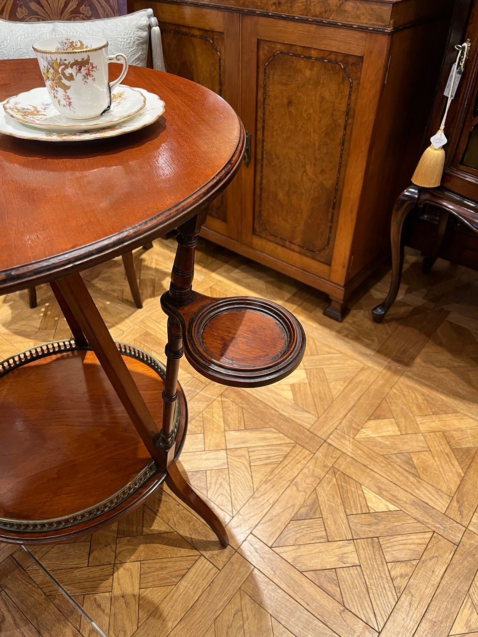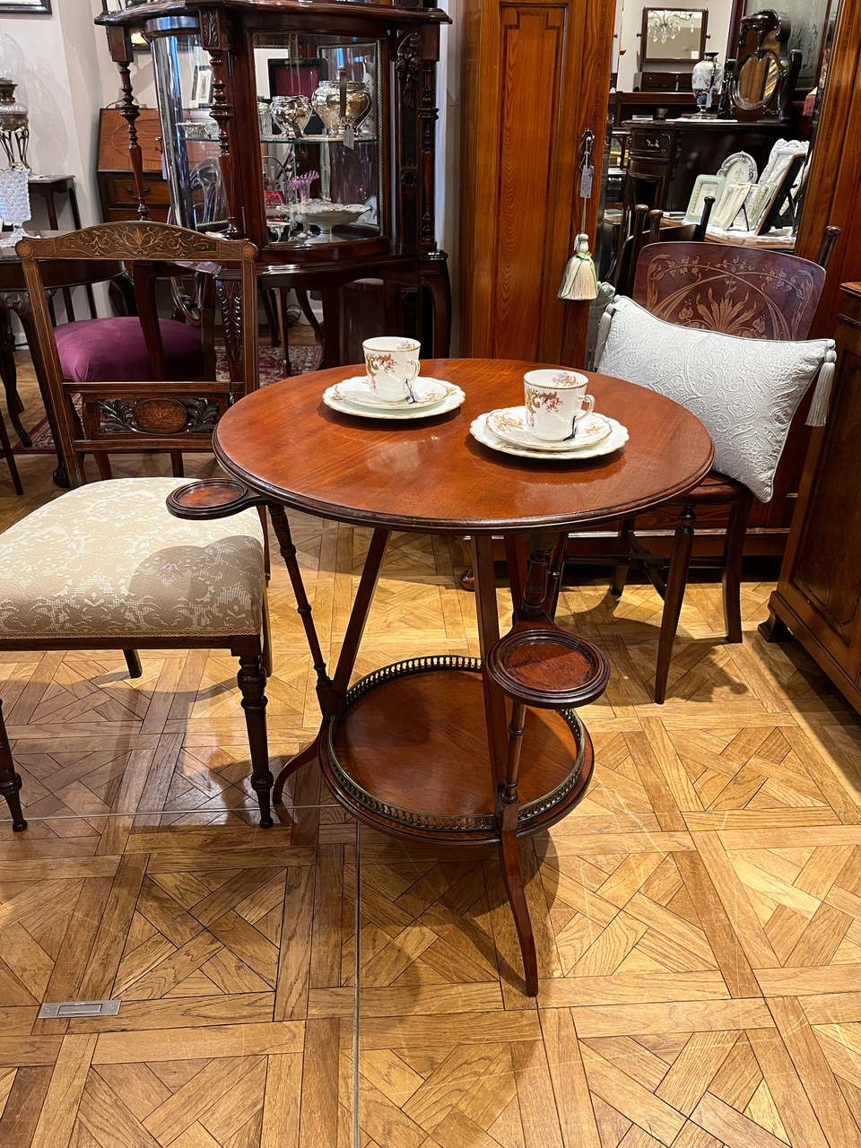 この真鍮の控えめな細工がティーテーブル全体にアンティーク特有の風格を添えてくれます。