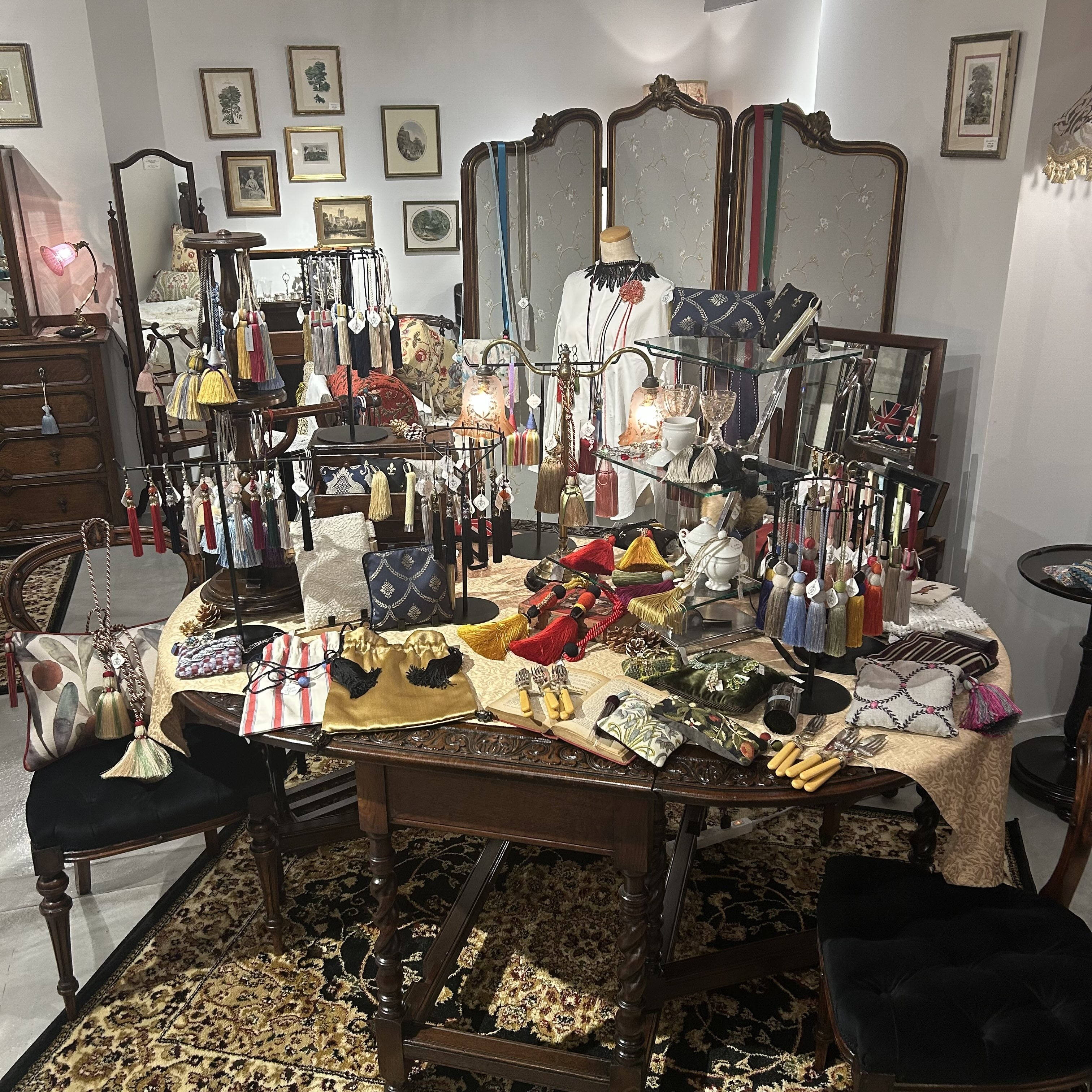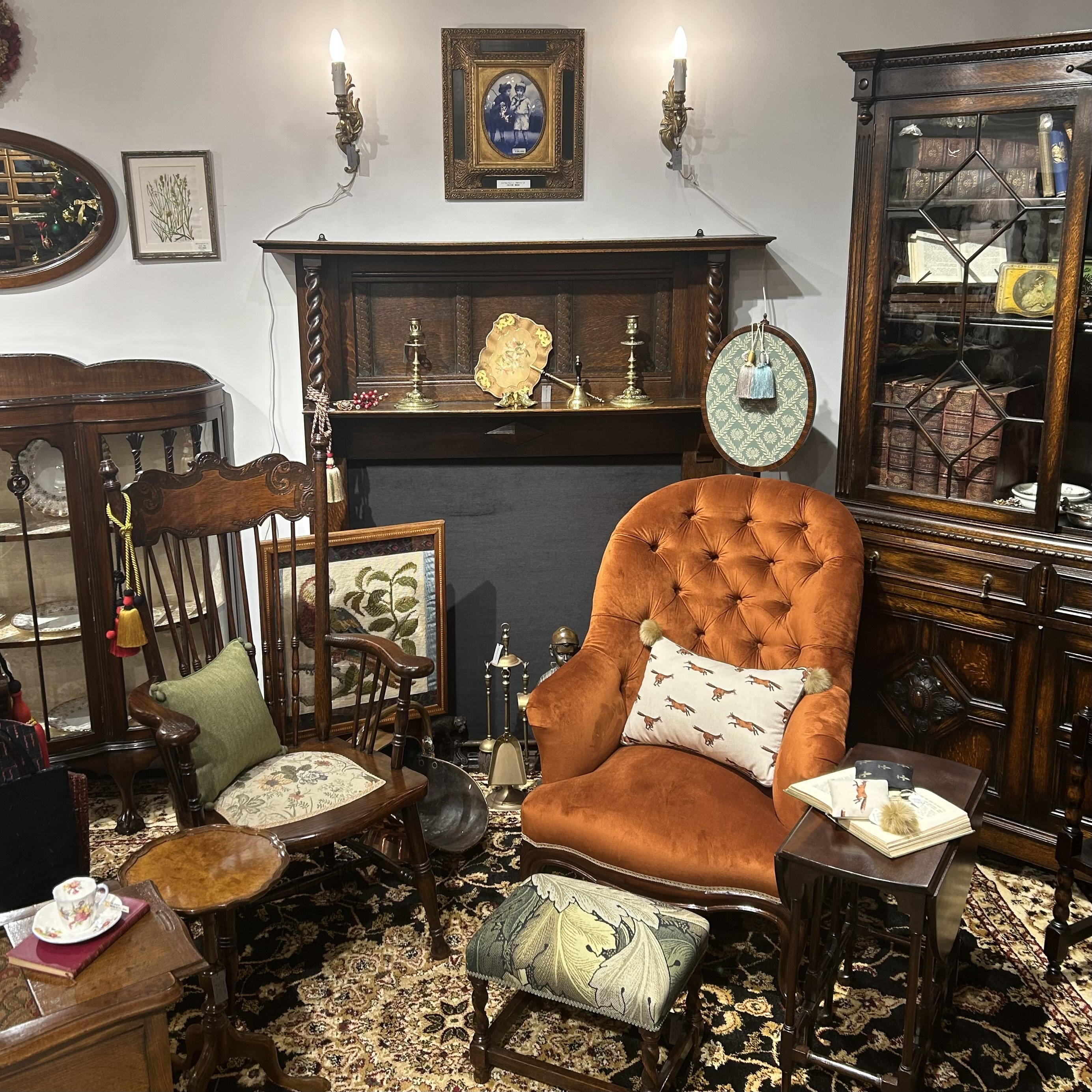 華やかなクリスマスディスプレイや、温かみのあるアンティーク家具が並びます。
