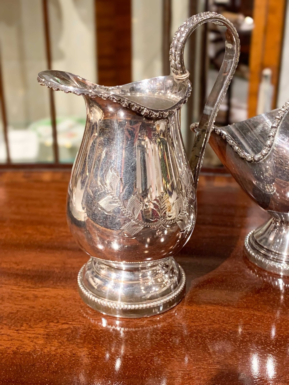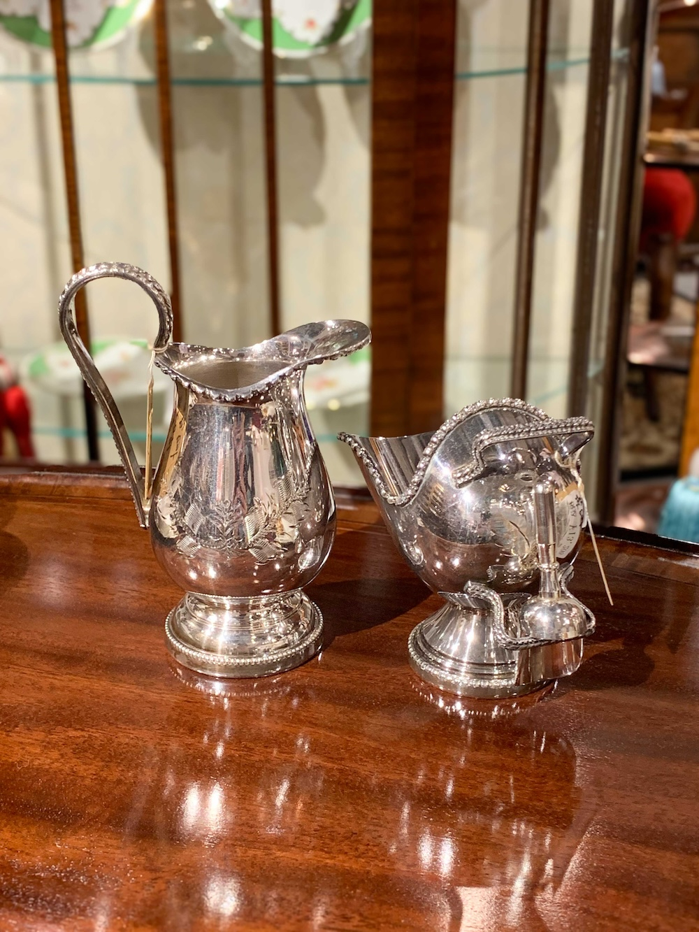 こちらはマッピン&ウェッブのシルバープレートミルク&シュガーセット。
