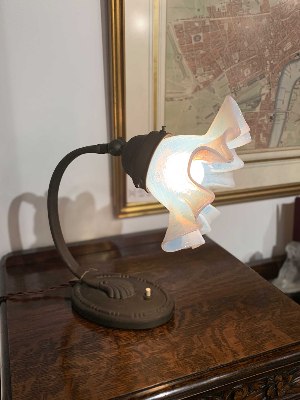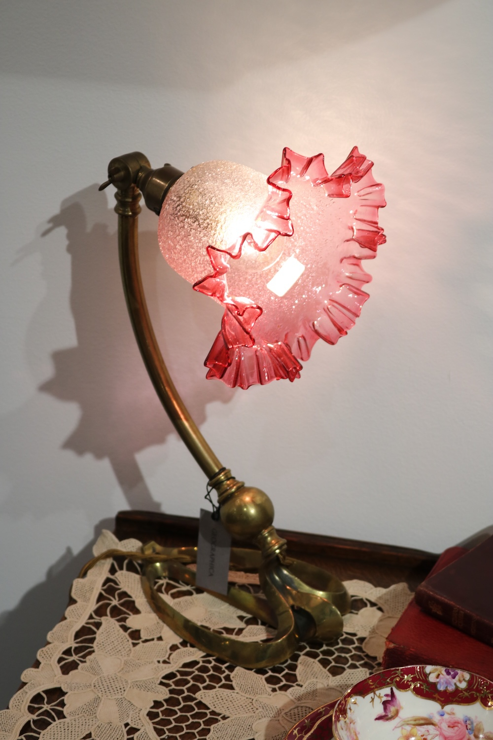 ヴァセリン、クランベリー、オパルセント・・・アンティークのガラスシェードを通す灯りは優しく温かみがあるように感じます。