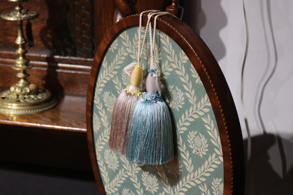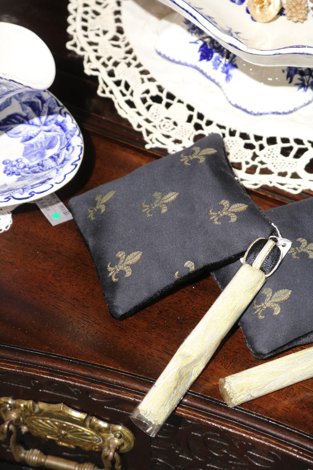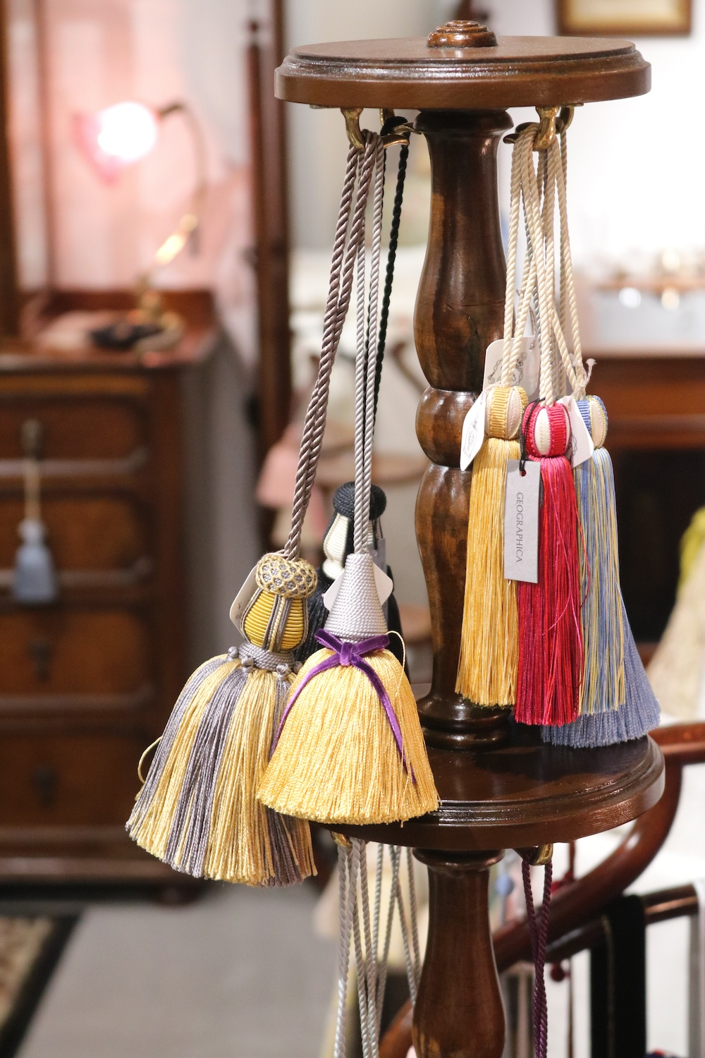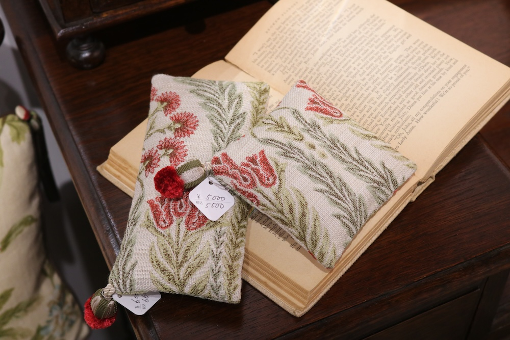 アンティーク雑貨とは別に、サリータッセルさんのタッセル、クッション、ソフト文鎮、バッグなどもたくさんございます。