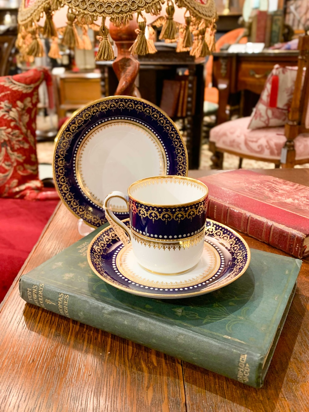 コバルトの色合いが上品で、一つ一つの絵柄模様が繊細で気品のある佇まい。