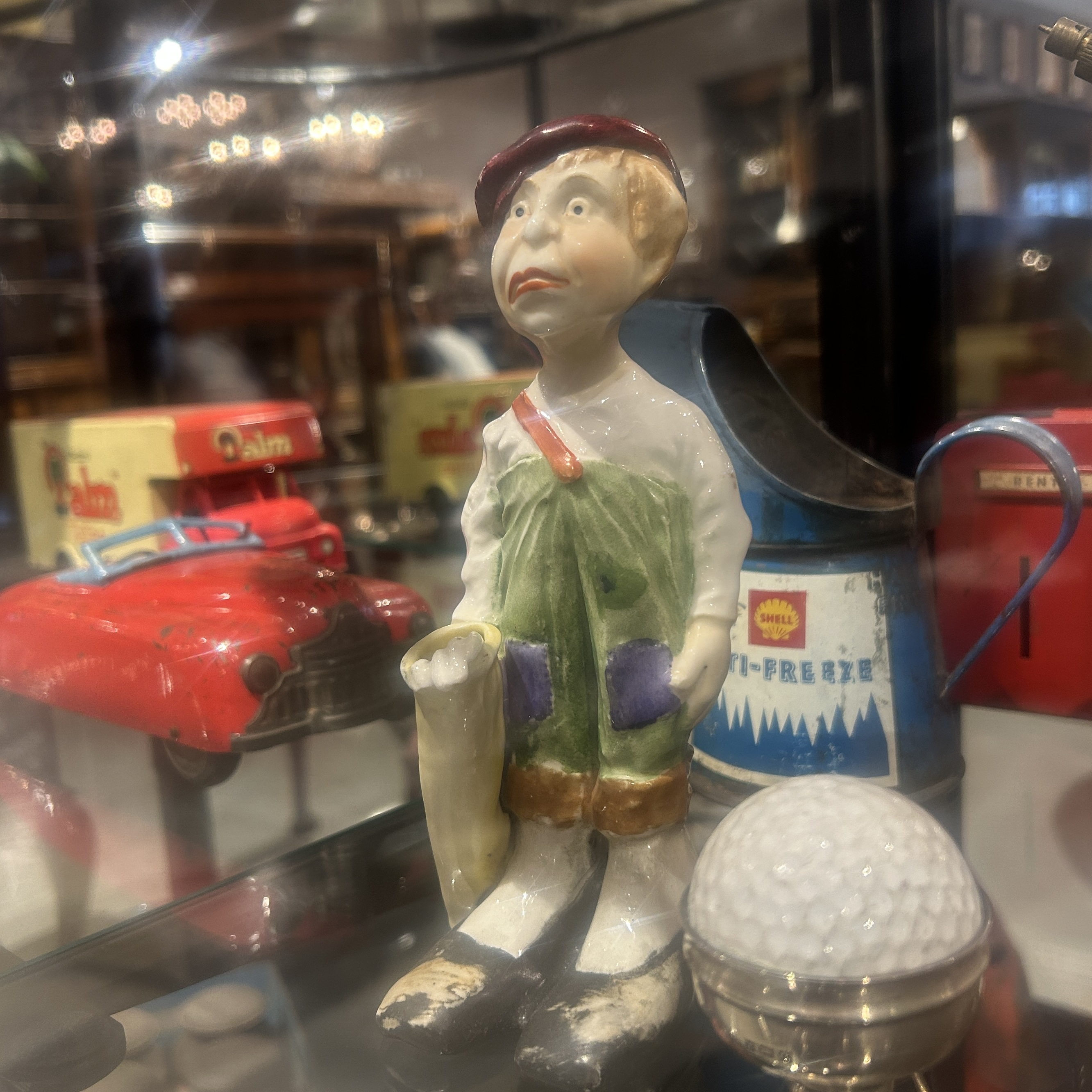 ゴルフキャディの形をしたオブジェ(陶器)。