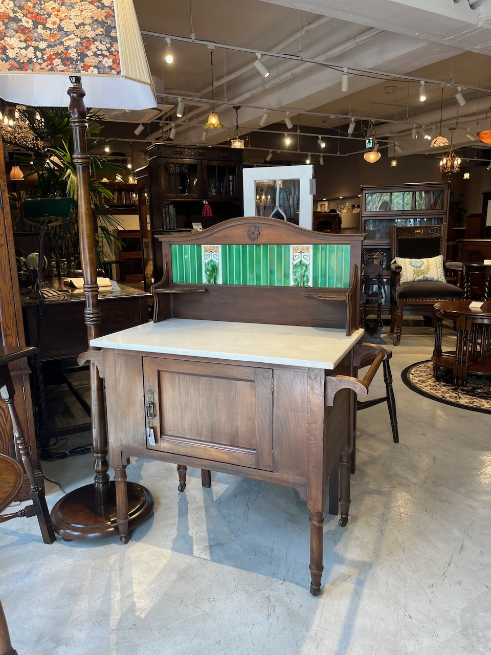 天板は大理石になっており、水や汚れに強く、現代でもとても扱いやすいのが魅力です。