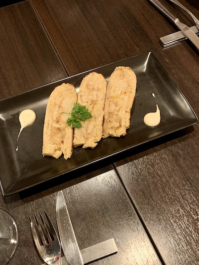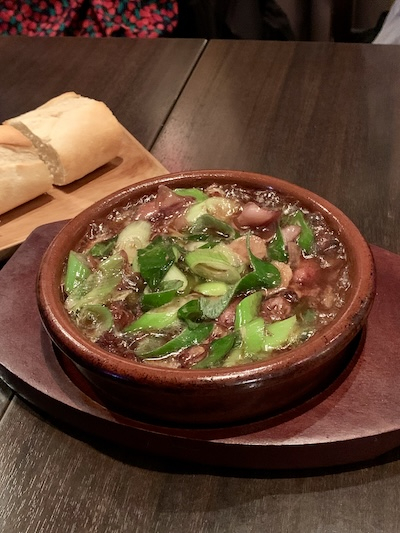 今回は、「本日のお勧め」のイベリコ豚のパエリアやヤリイカのアヒージョ、エビクリームコロッケ、そして定番のスパニッシュオムレツなどをいただきました。
