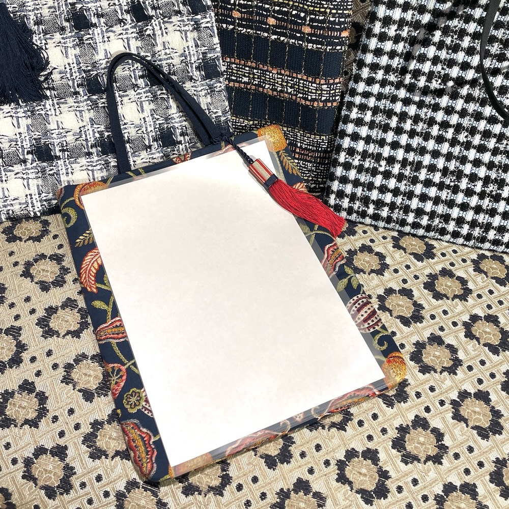 A4クリアファイルが入るサイズで、ノートパソコンやタブレットにもぴったり。お稽古バッグにしてもいいですよね。