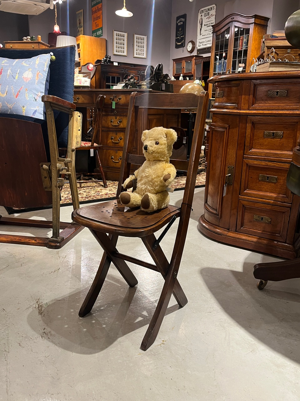 一見すると子供用のような愛らしいサイズ感のフォールディングチェア。