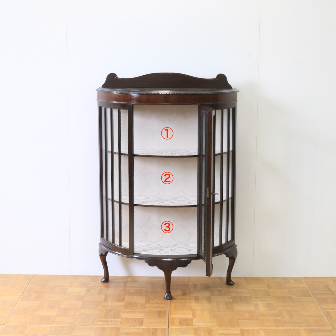 キャビネット内部はダマスク柄のファブリックに交換しました。