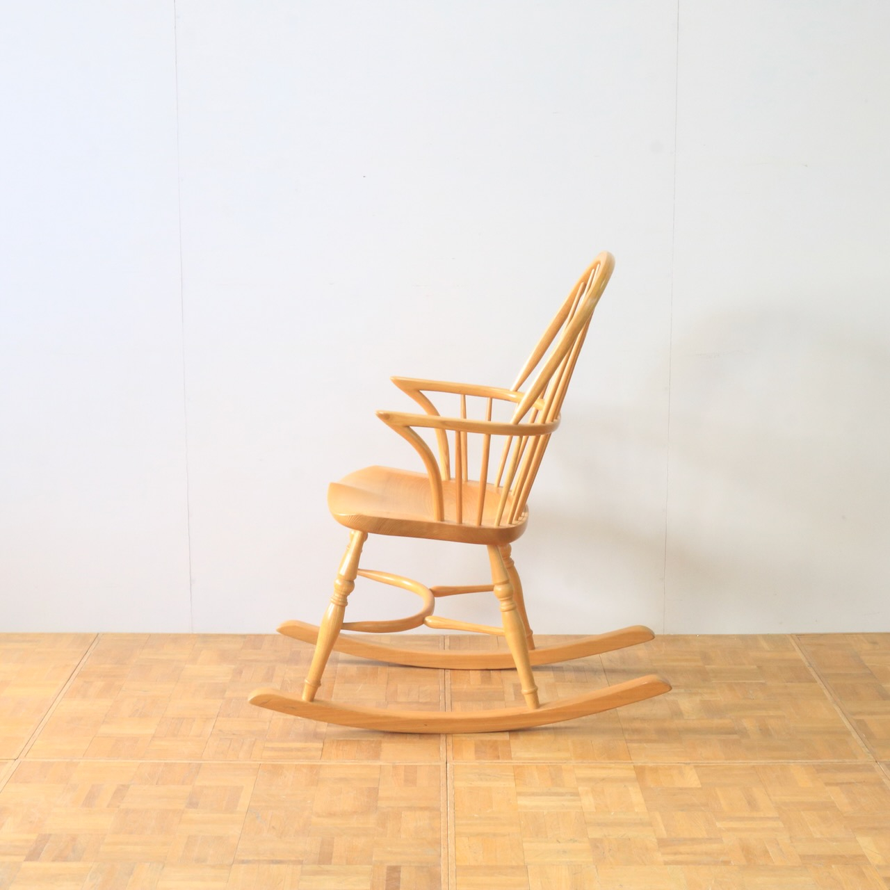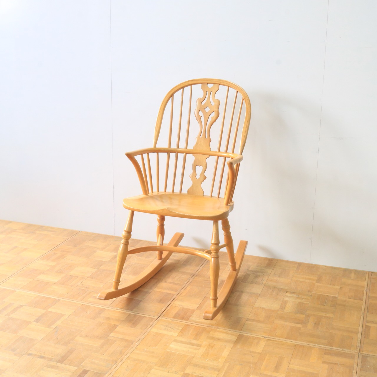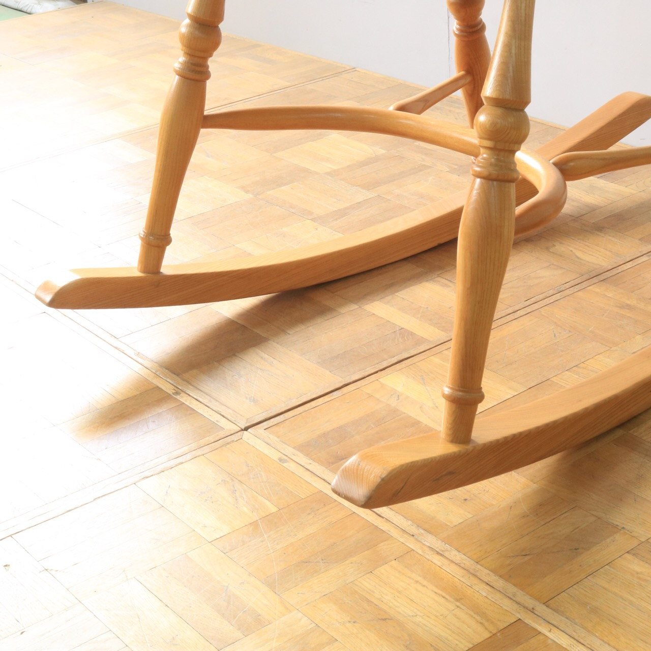 脚先はロッキングチェアーならではのソリ型。背を預けると優しく揺れます。ゆったりとした時間をお楽しみください。