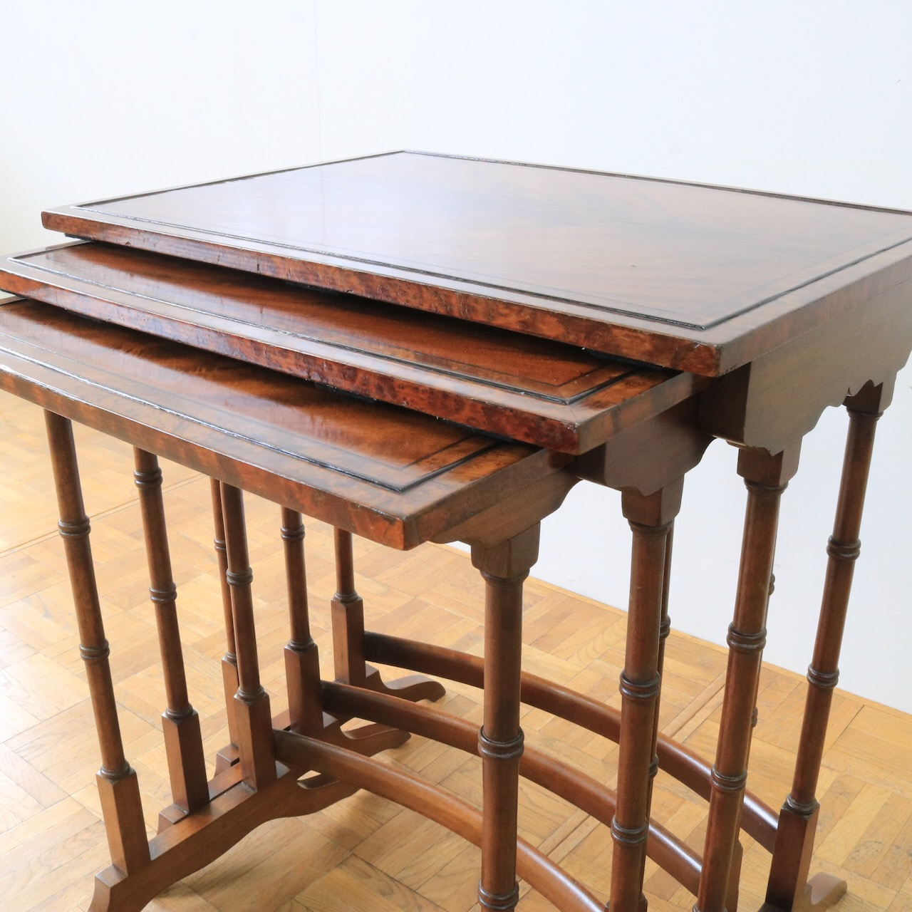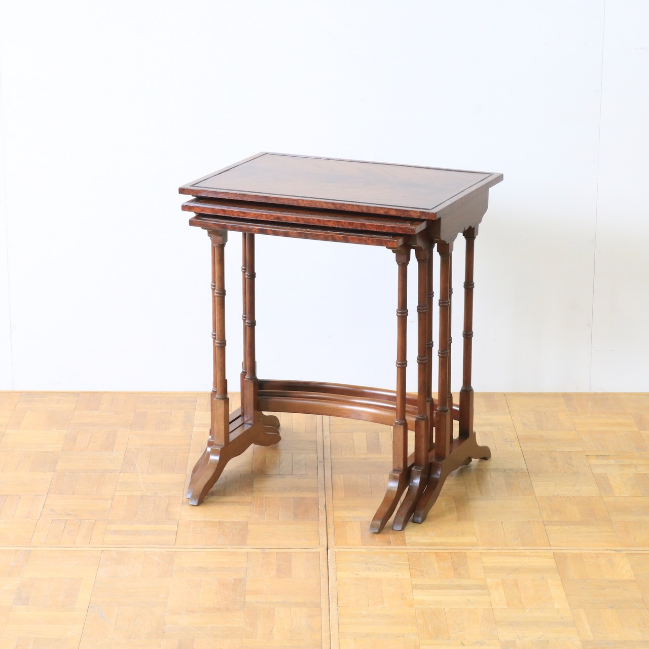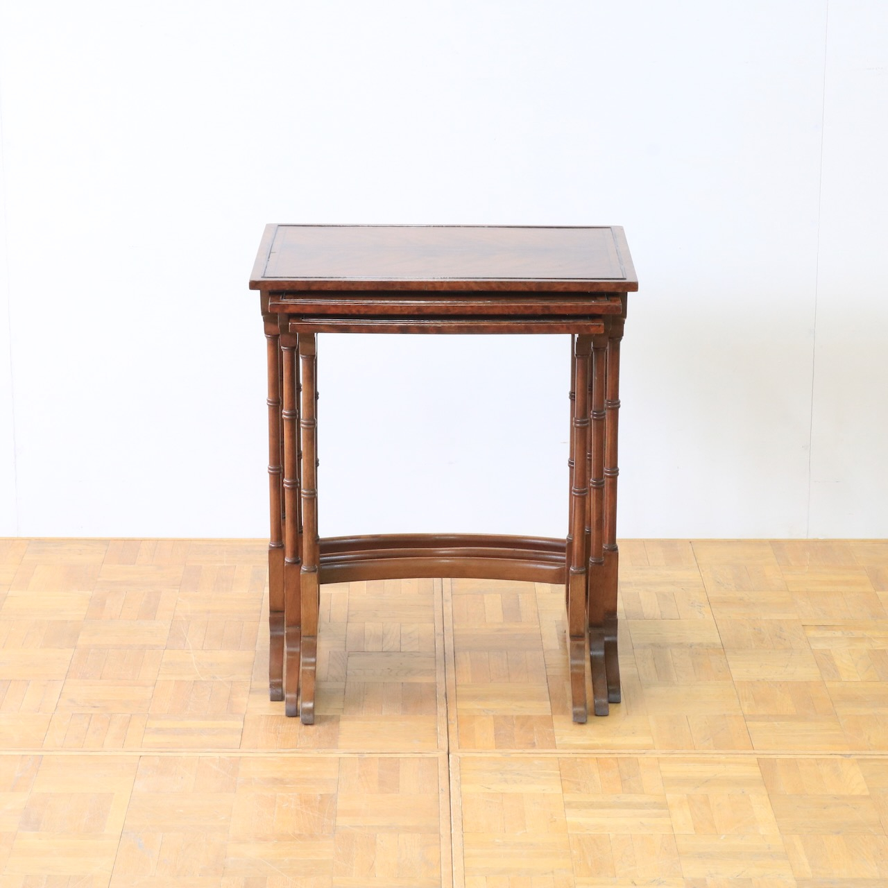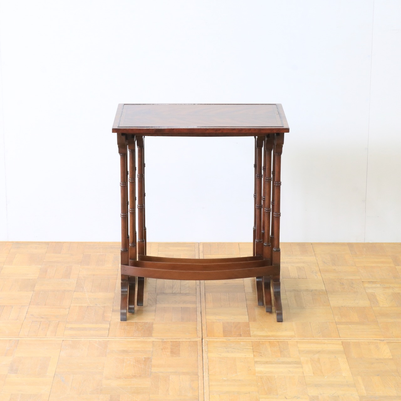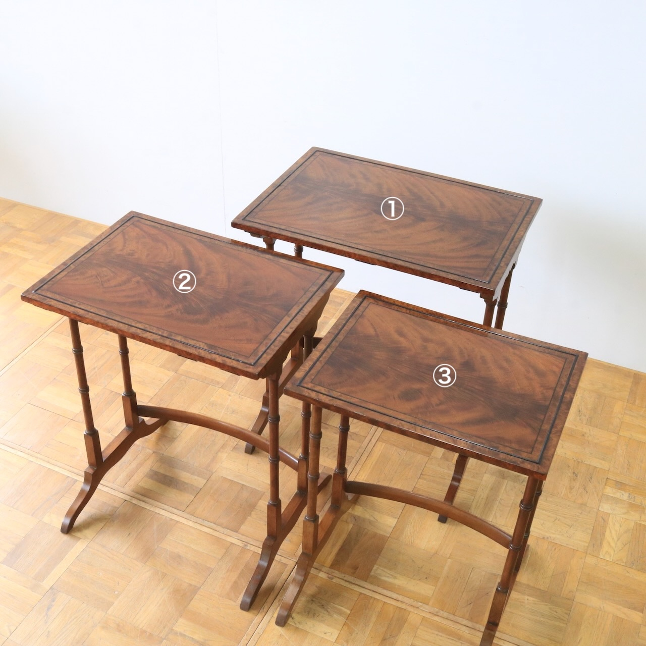 1930年代、マホガニーのネストテーブル。3個のテーブルが大・中・小で入れ子になっていて、ソファーサイドや3個をバラしてお家の中のいろいろな場所に置いたり…と多様性のあるスモールテーブルです。
