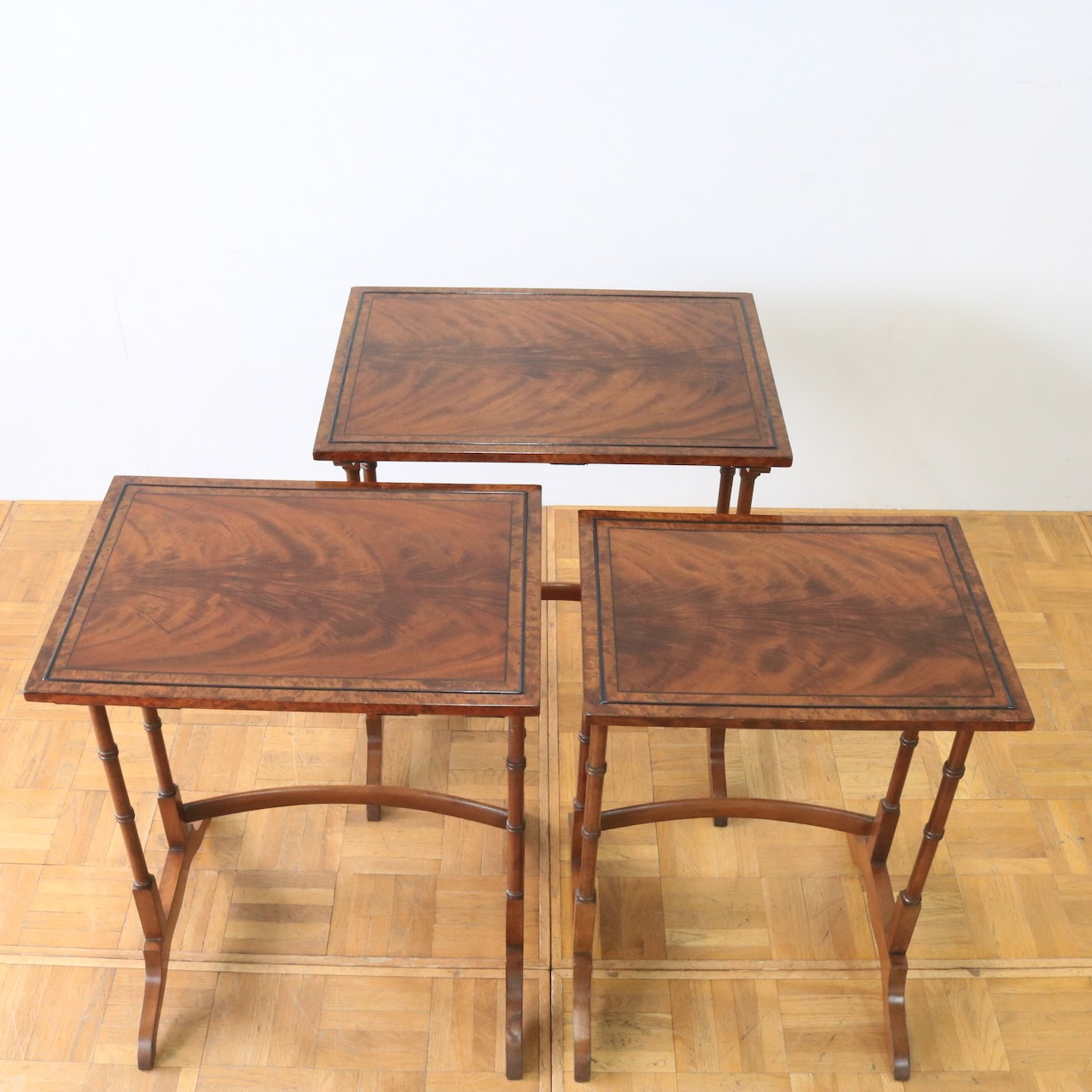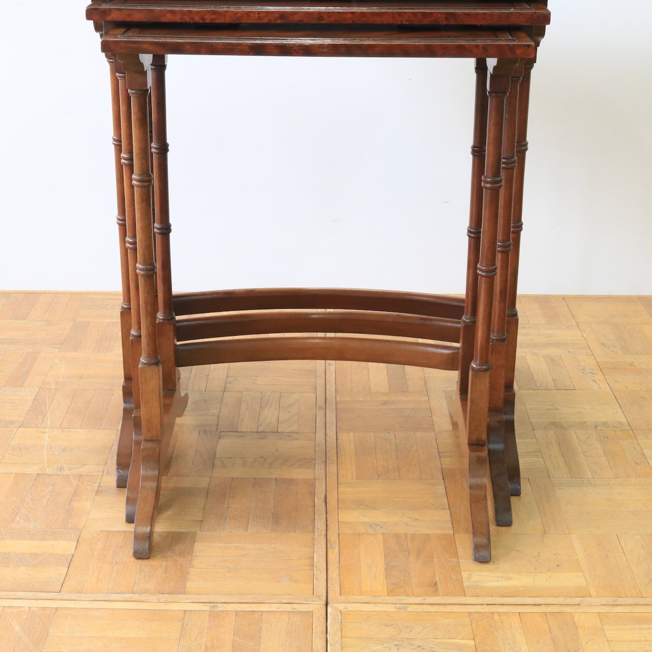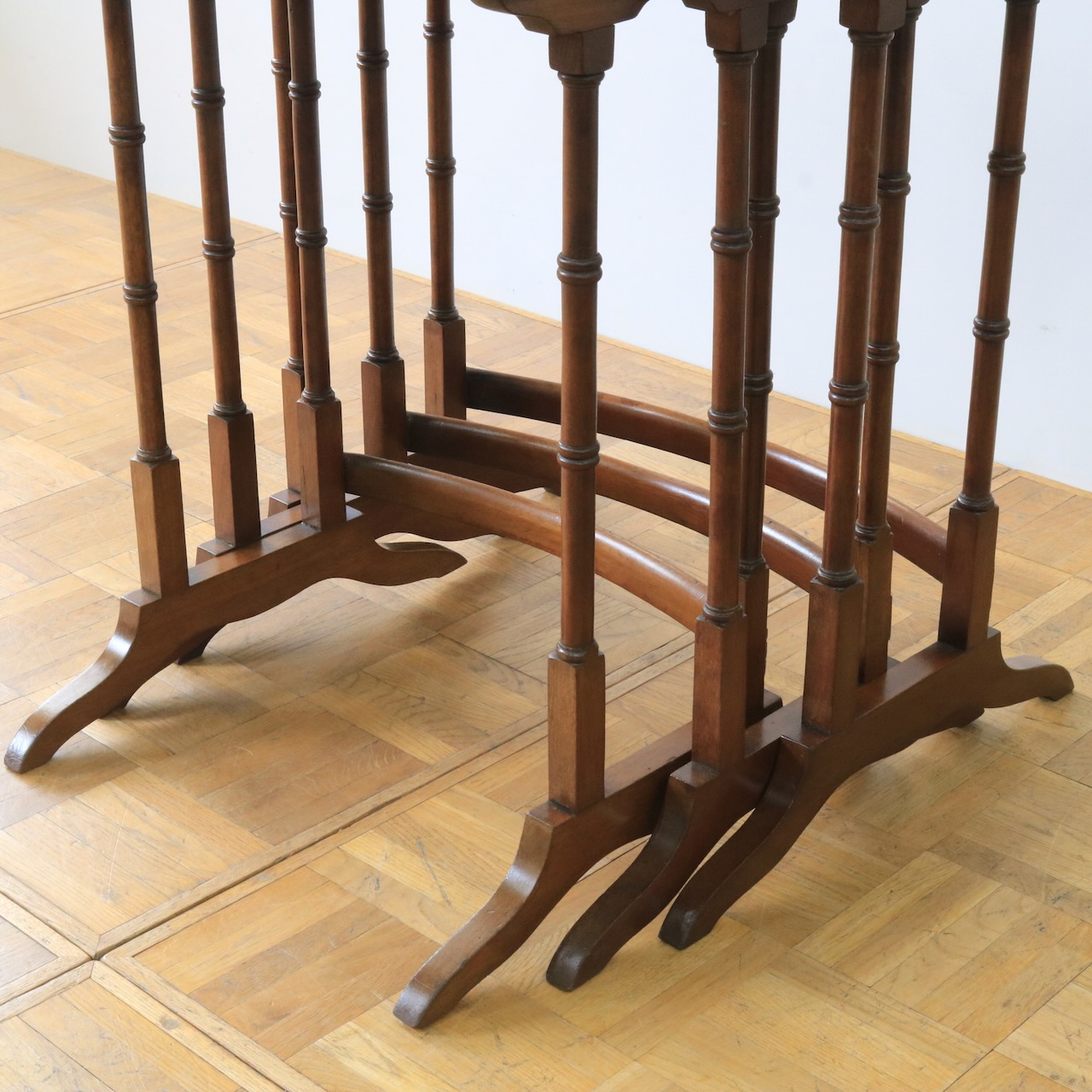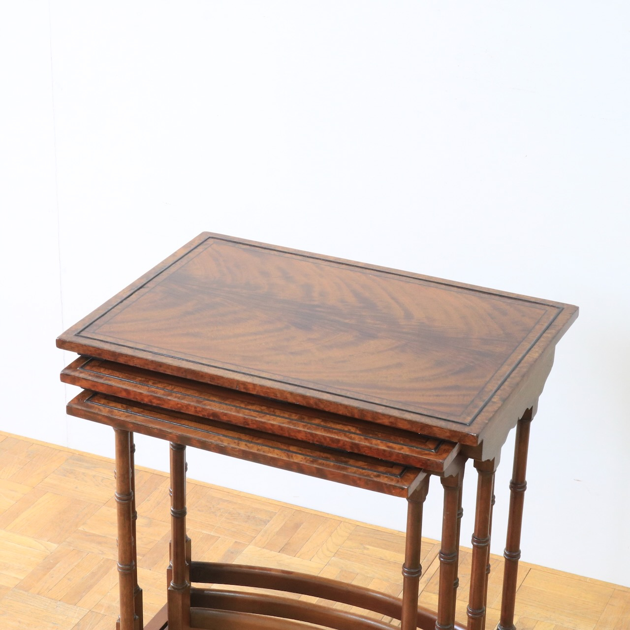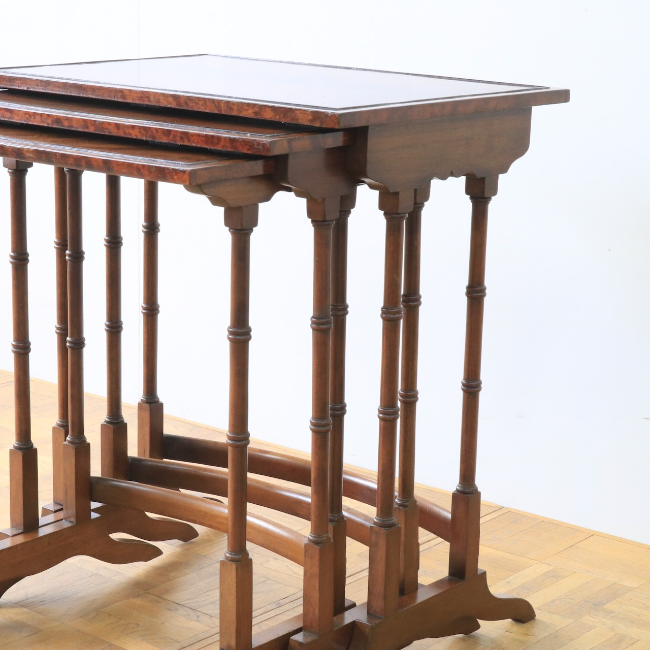 1930年代、マホガニーのネストテーブル。3個のテーブルが大・中・小で入れ子になっていて、ソファーサイドや3個をバラしてお家の中のいろいろな場所に置いたり…と多様性のあるスモールテーブルです。