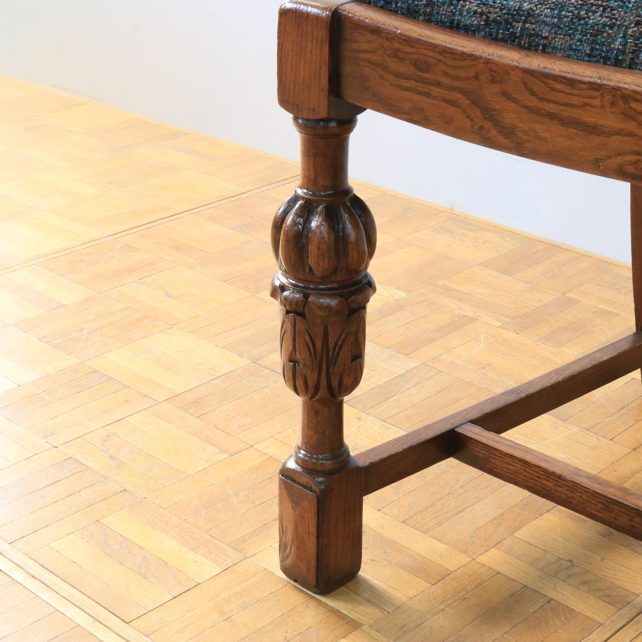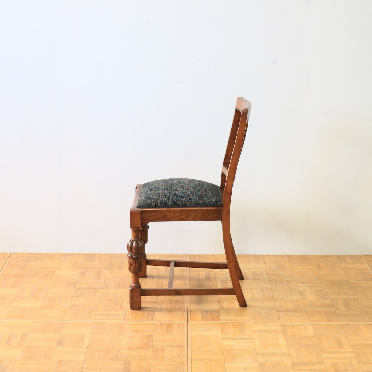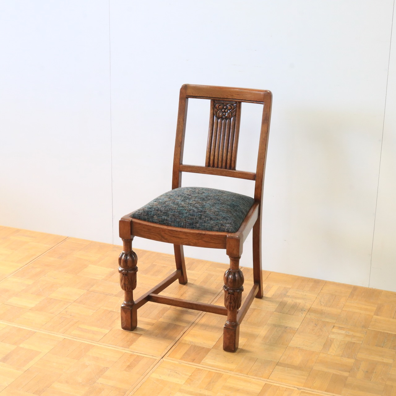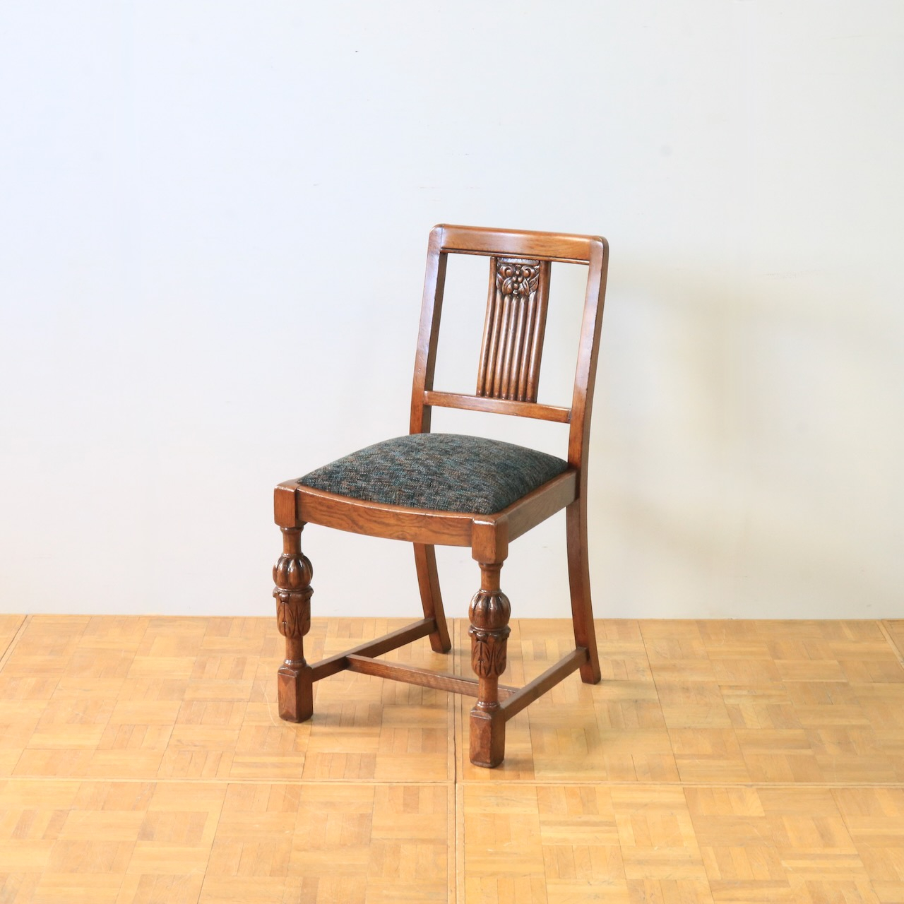 配送料の目安 ▶︎1930年代のオークチェアー。背もたれに入った植物と果実のモチーフや脚元の控えめなブルボースがアンティークならではの雰囲気を演出しています。食卓用にお使いいただける頑丈なつくりです。