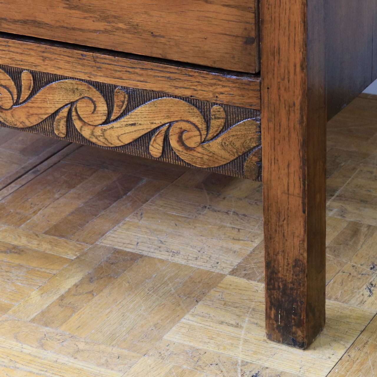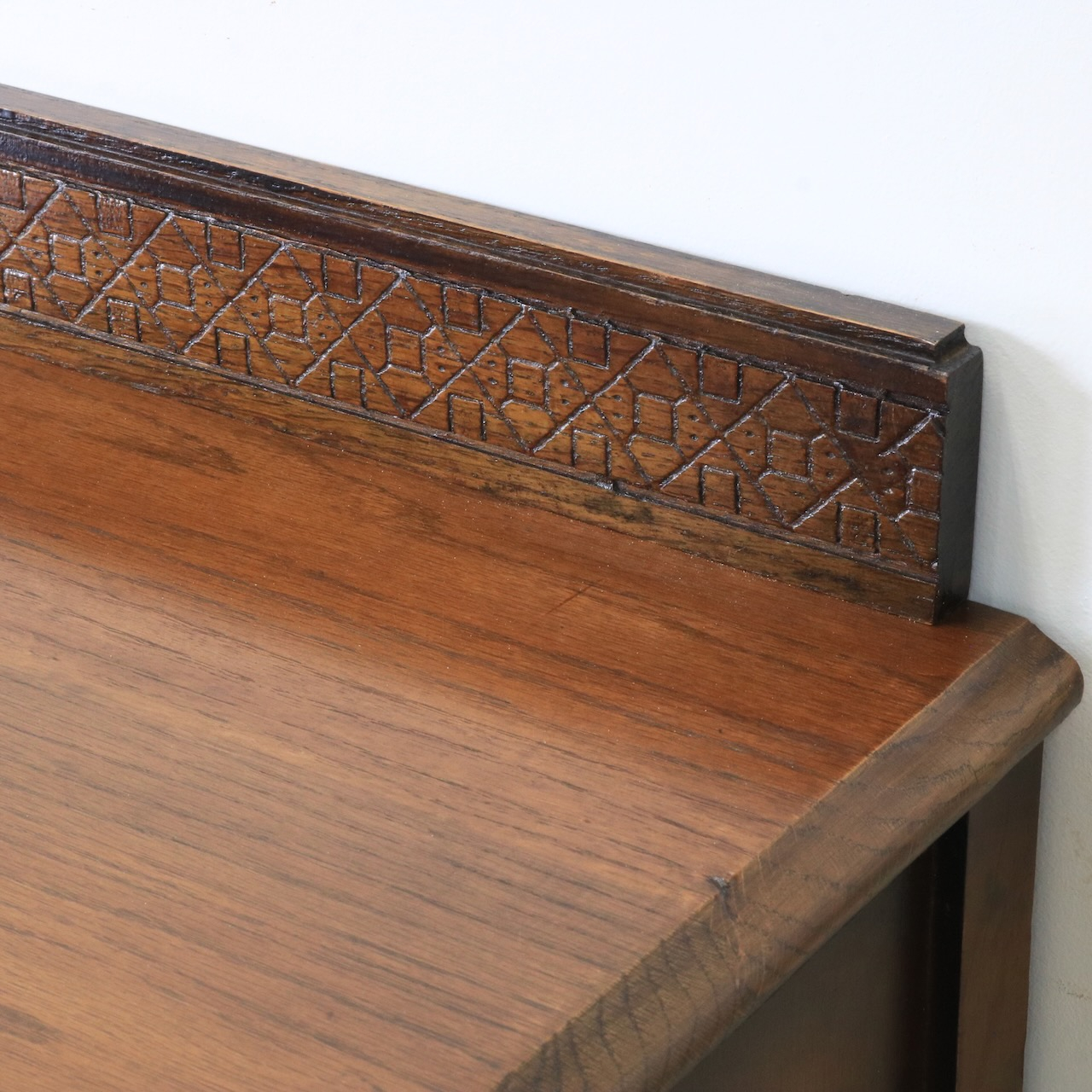 天板の縁は面取りされています。細部にアンティークらしさが覗くデザインです。