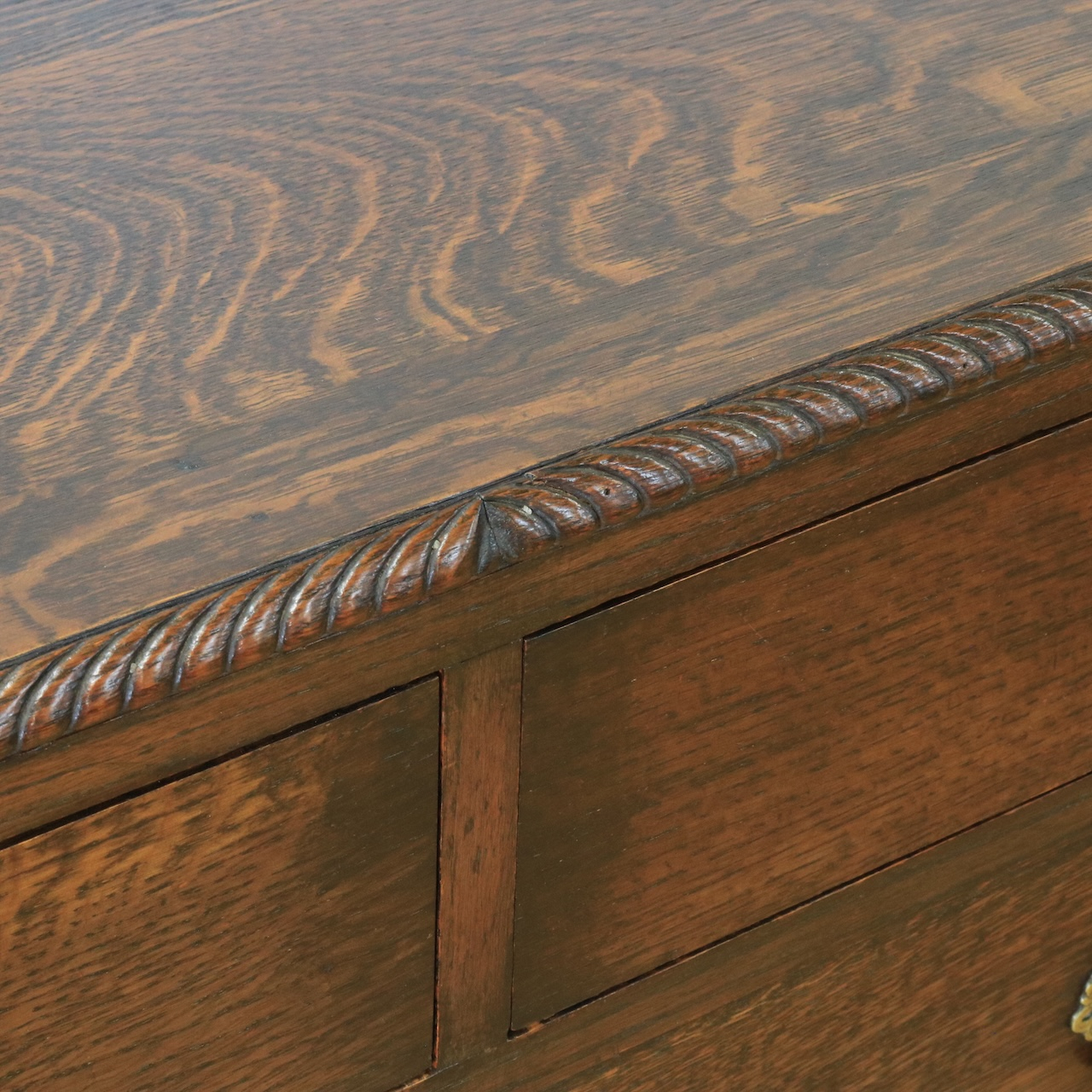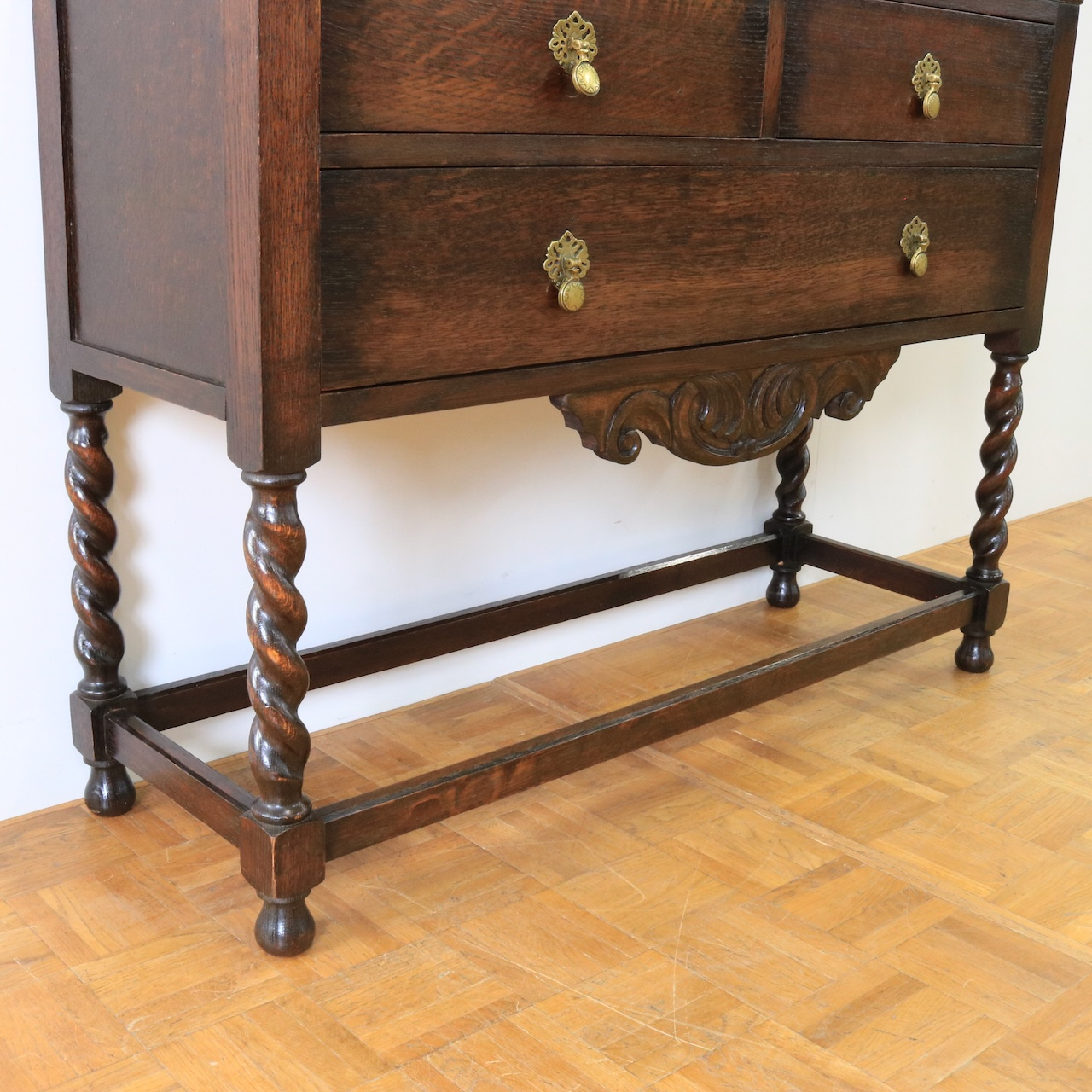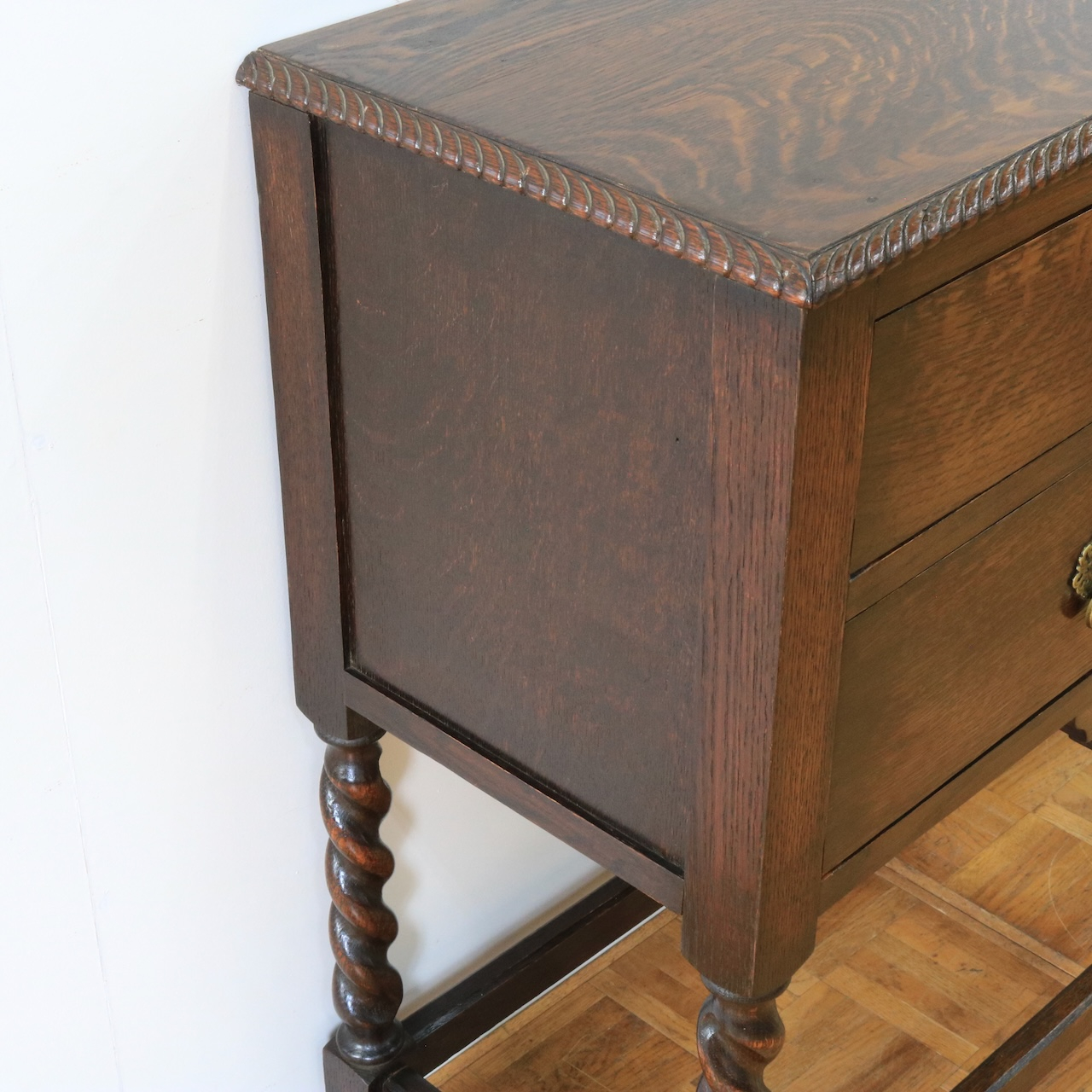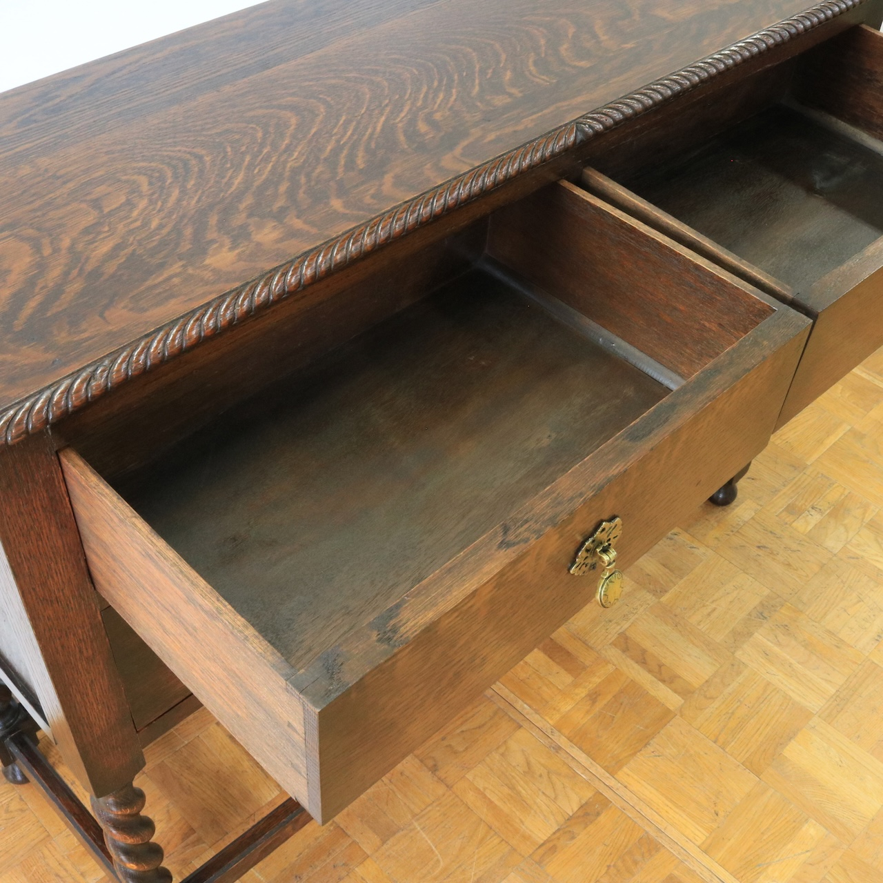 天板縁のガドルーニング、引き出しの引き手金具、引き出しの下には彫刻装飾など、装飾に富んだ美しい家具です。