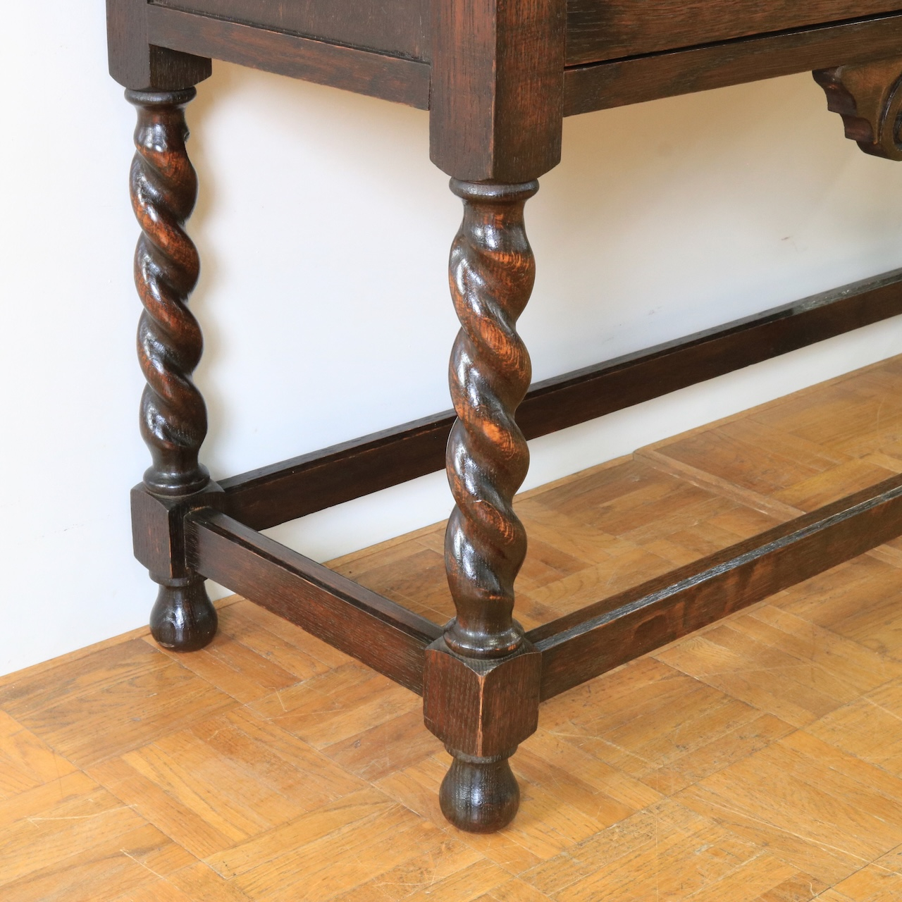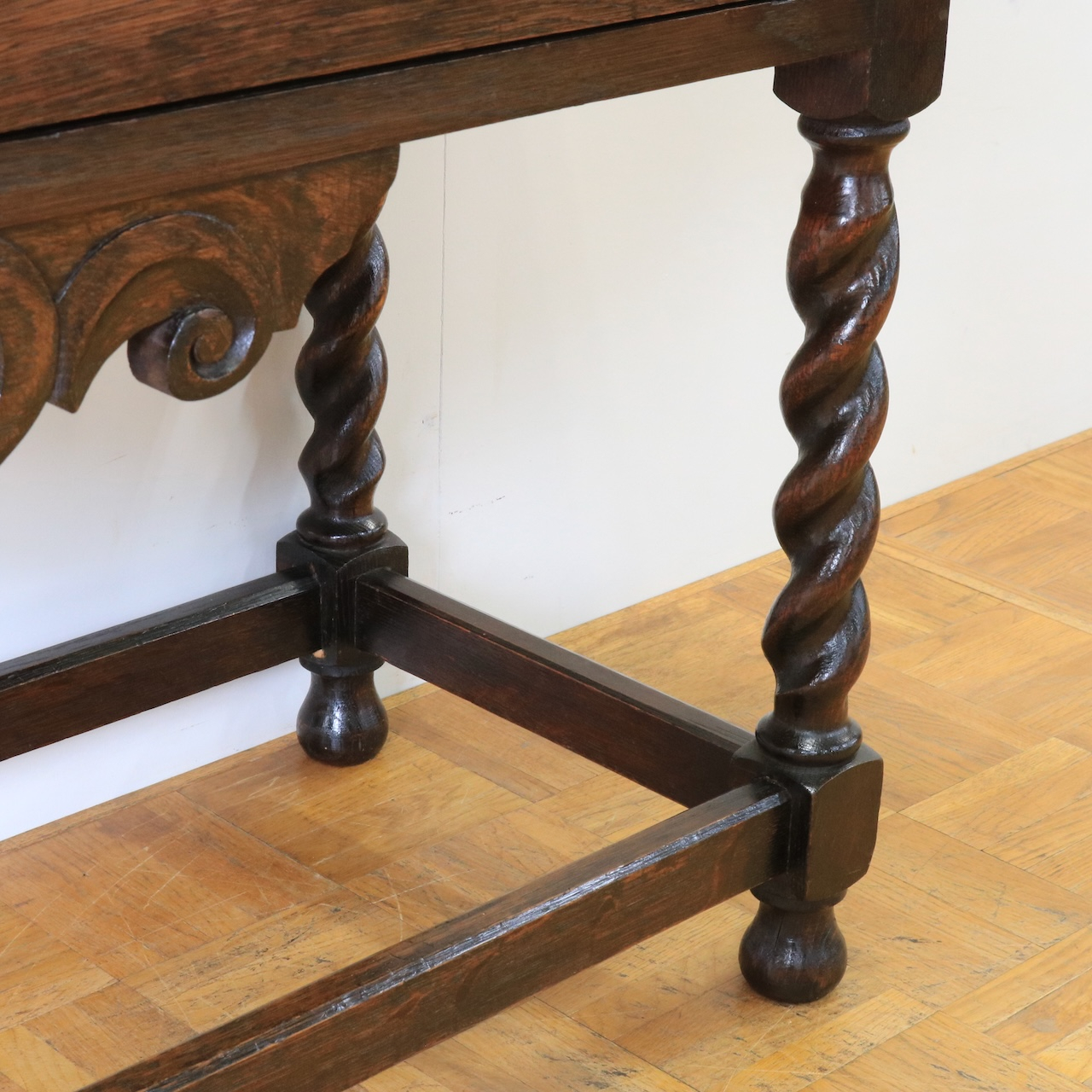 特に目を引くのは、脚部に採用された優雅なツイストレッグと、天板の縁を飾るガドルーニングと呼ばれる連続した装飾が、全体のデザインにリズムと動きを与えています
