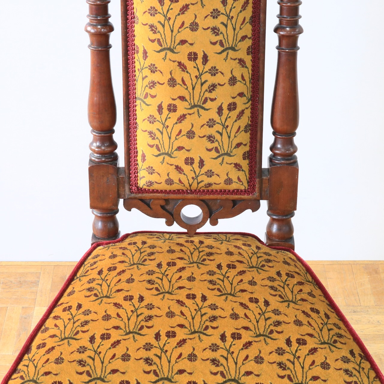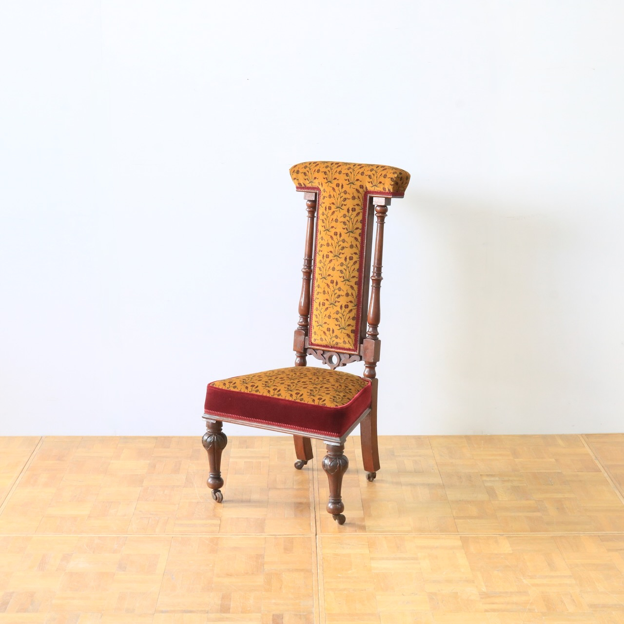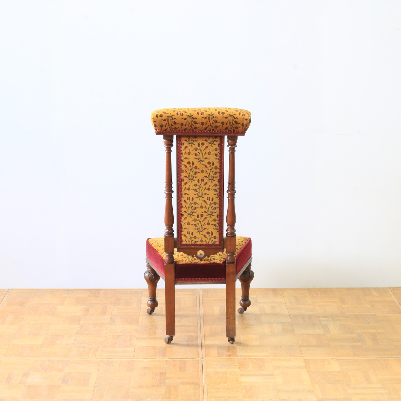 1880年・ヴィクトリアンのプレイヤーチェアー。元々はお祈りの際に使われていたチェアーです。