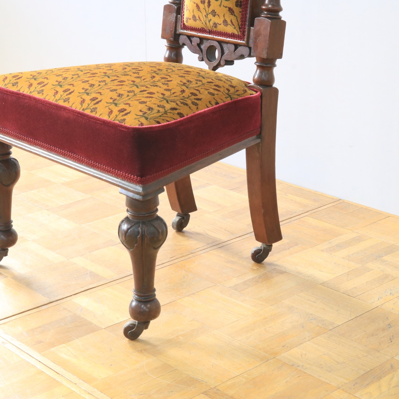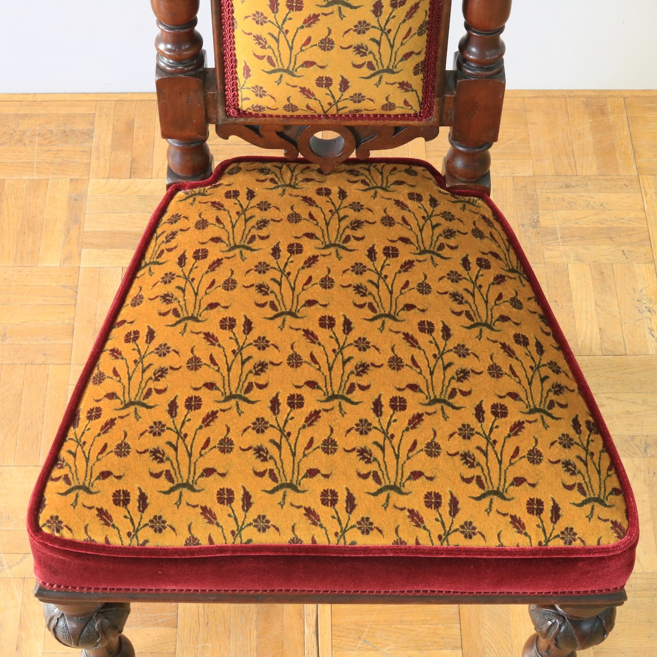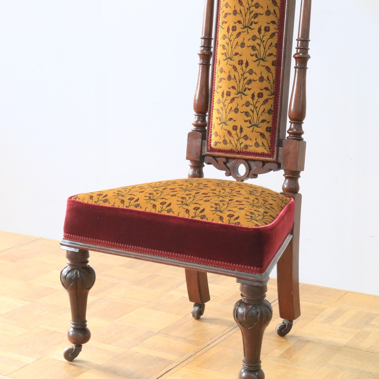 1880年・ヴィクトリアンのプレイヤーチェアー。元々はお祈りの際に使われていたチェアーです。