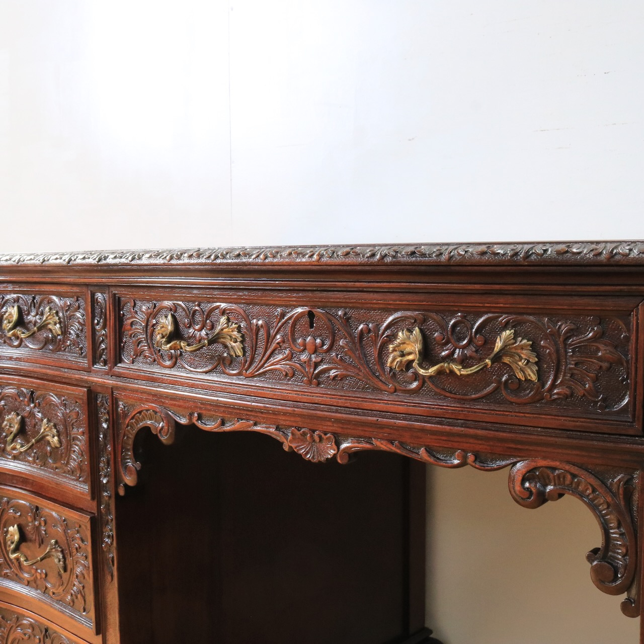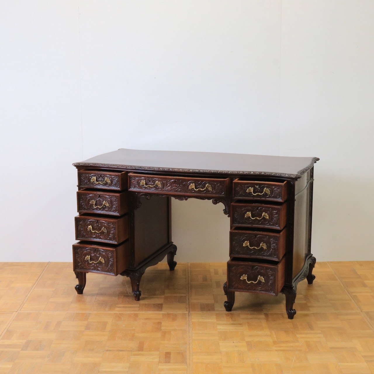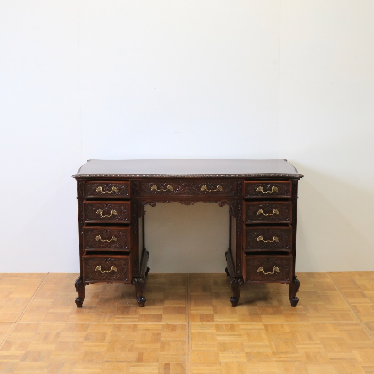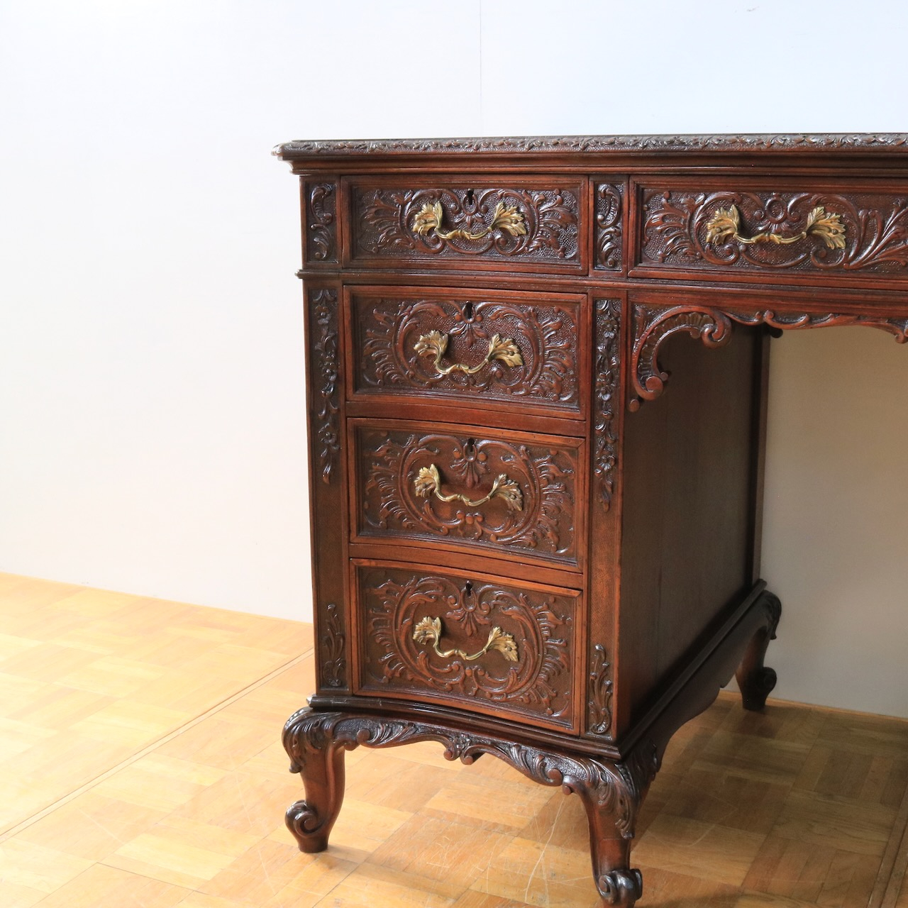 側面や背面に至るまで彫刻で飾られたデスク。360度どこから見ても美しい圧巻のクオリティです。