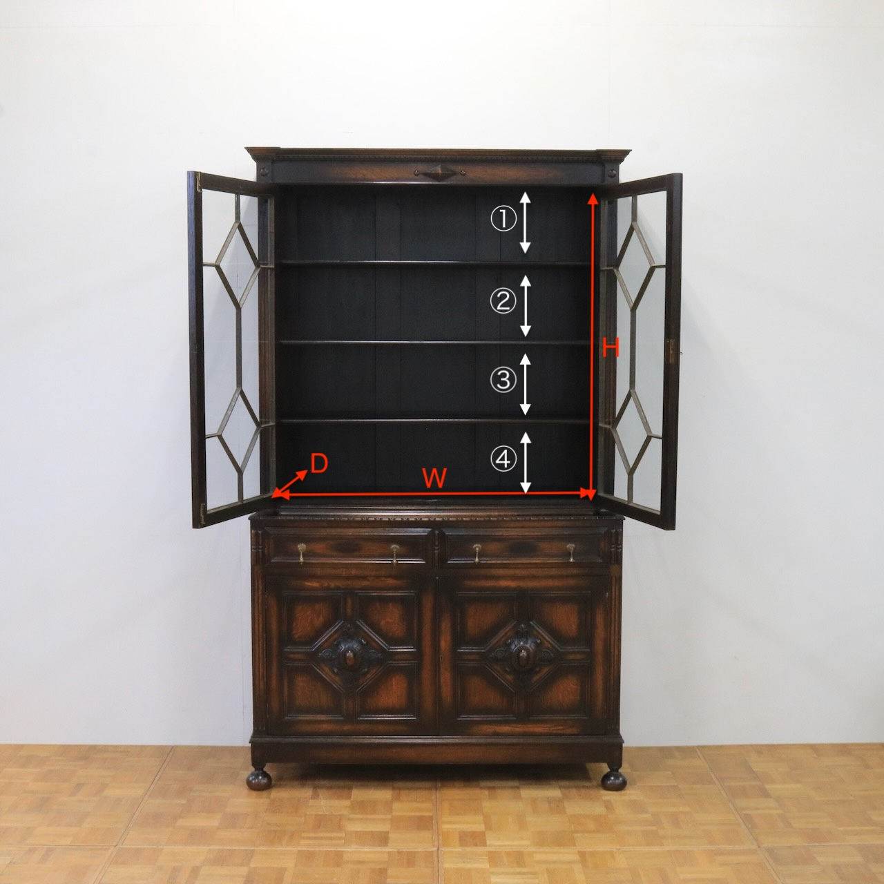 ガラス扉、引き出し、パネル扉が施され整理しやすいデザイン。重厚な美しさだければ無く機能性も兼ね備えています。