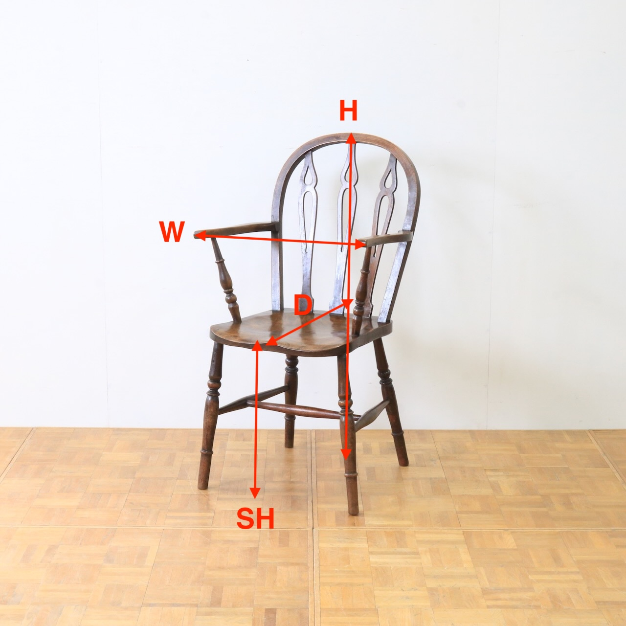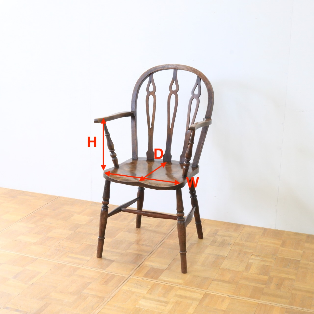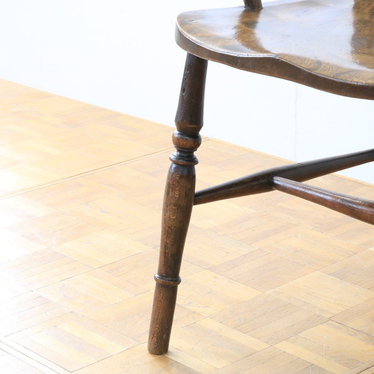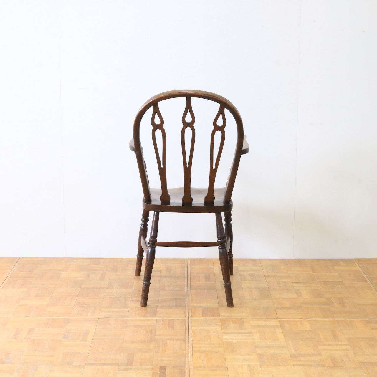 1920年代、エルム材のアームチェアー。エルム材ならではの素朴で温かみのある風合いが、ダイニングやデスク周りに落ち着いた雰囲気を添えてくれます。