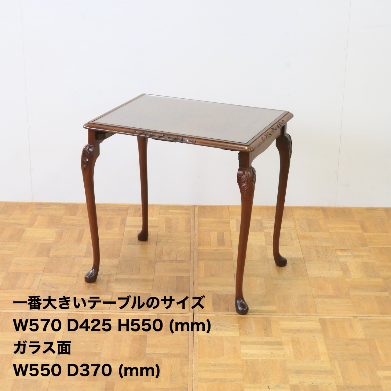 ガラストップは天板の塗面を気にせずお使い頂け、アンティークが初めての方にも使いやすくお勧めです。
