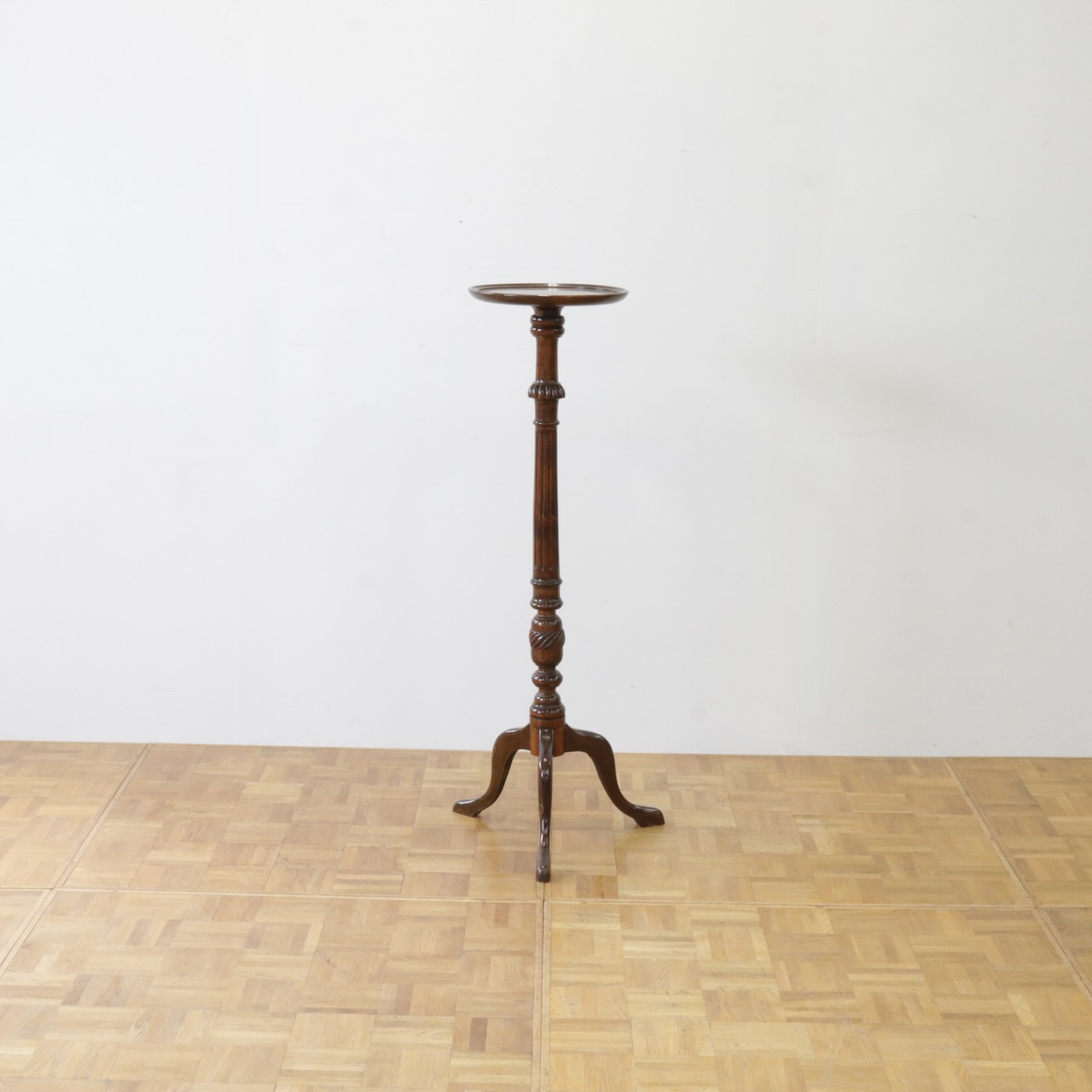 1920年代、マホガニーのプランツスタンドです。スッキリとしたコラムの柱から伸びる脚はトライポッド。お部屋のコーナーや家具の横でグリーンを置いてお部屋のアクセントに!