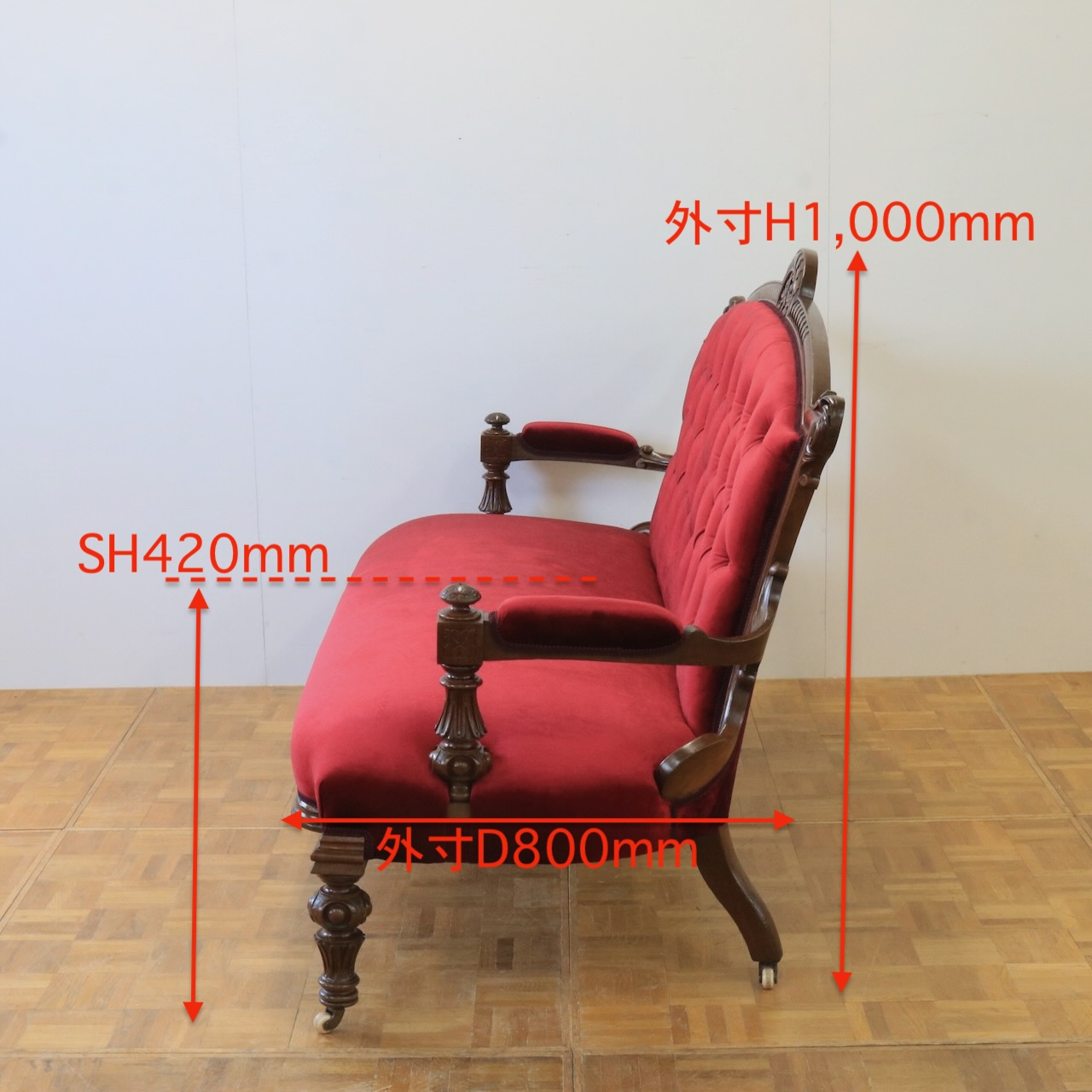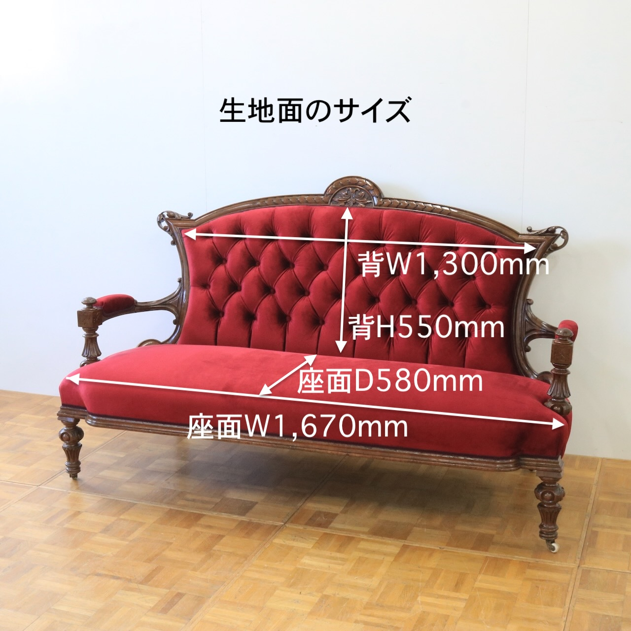 座面や背面は少し光沢のある深みのある赤色のベルベットで張り替えました。