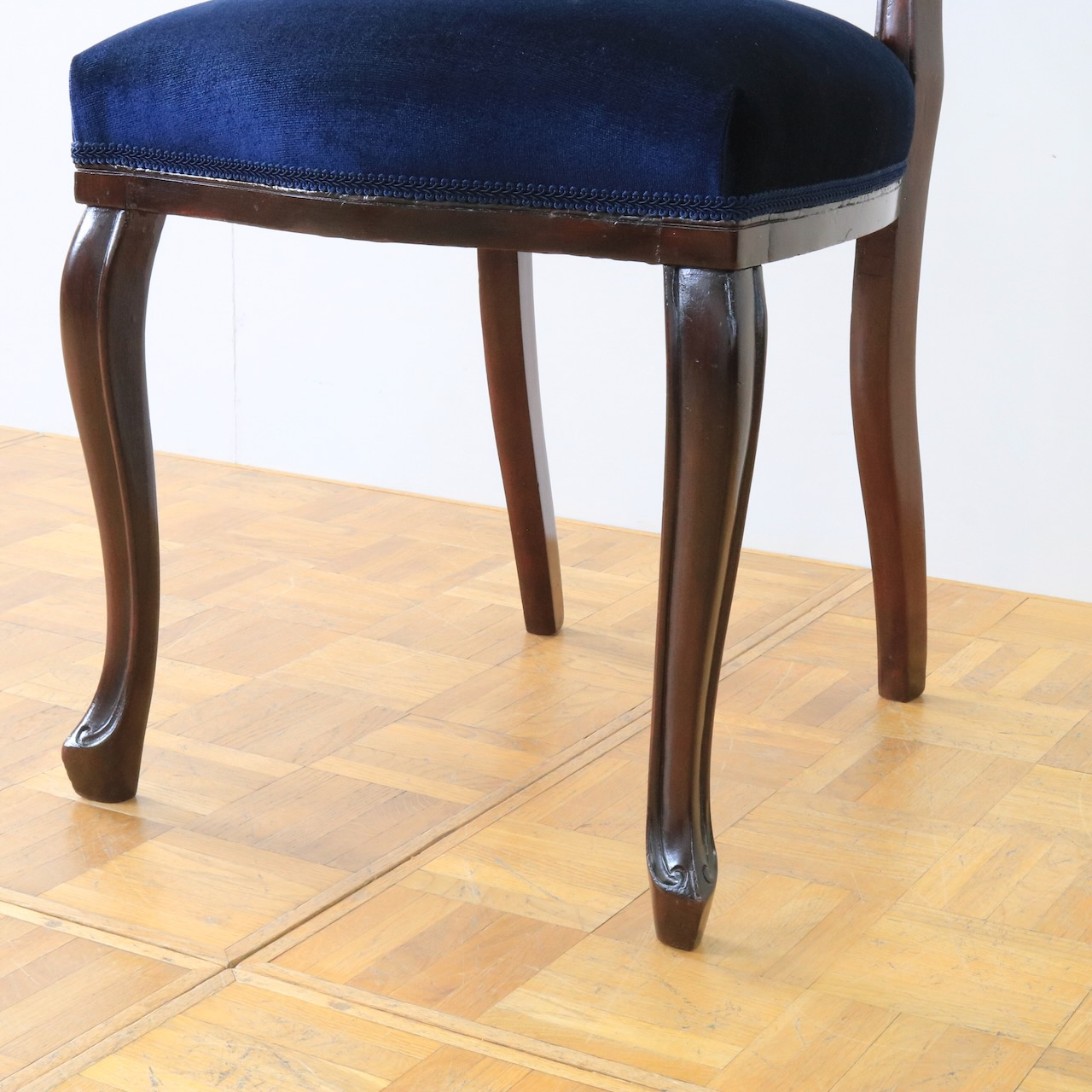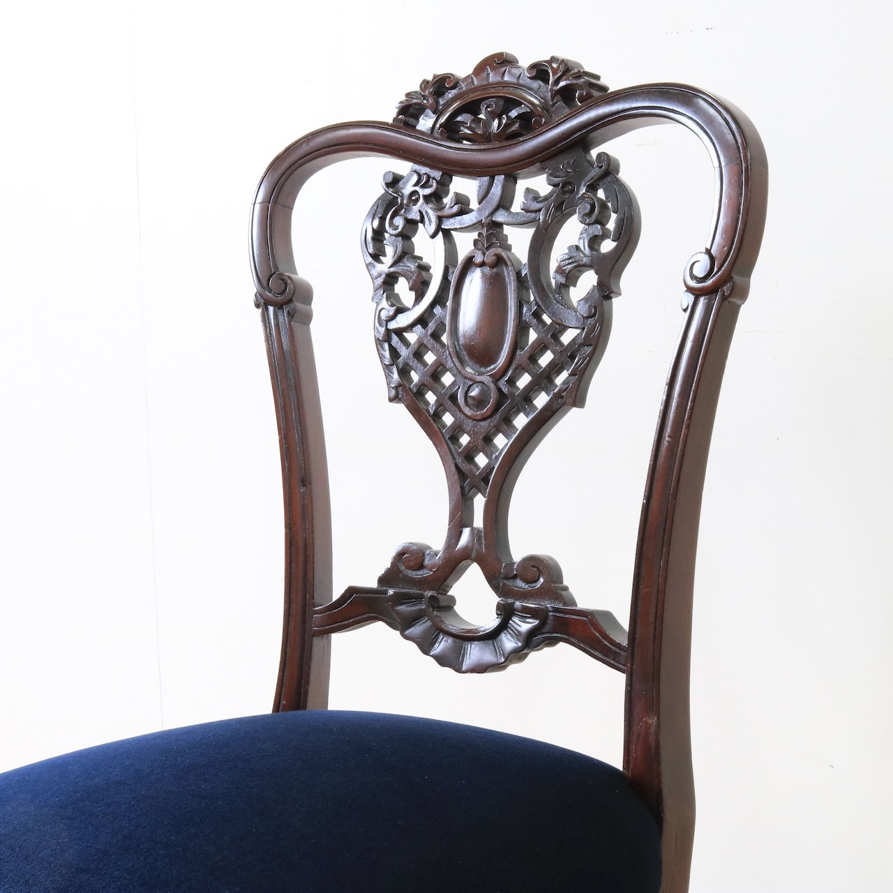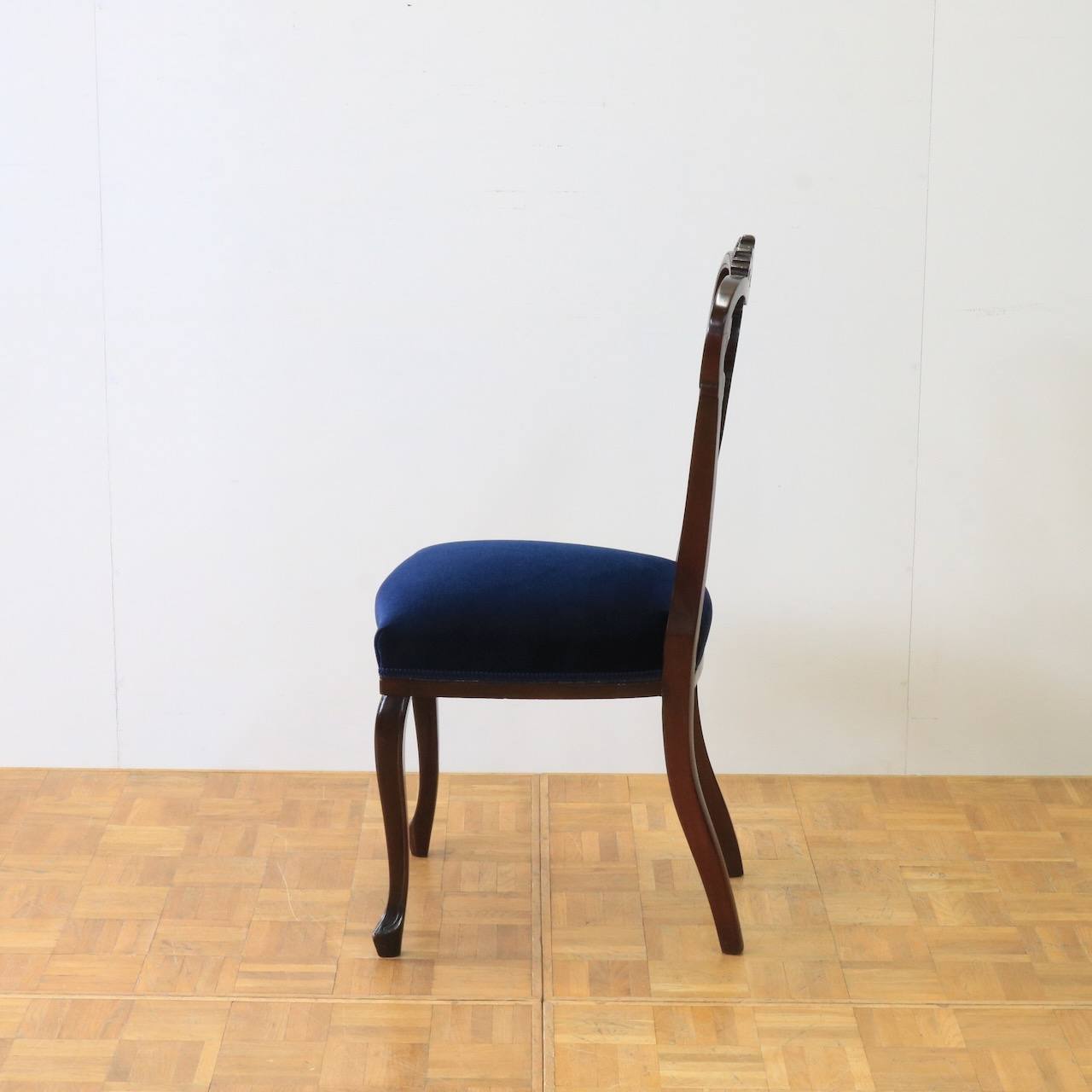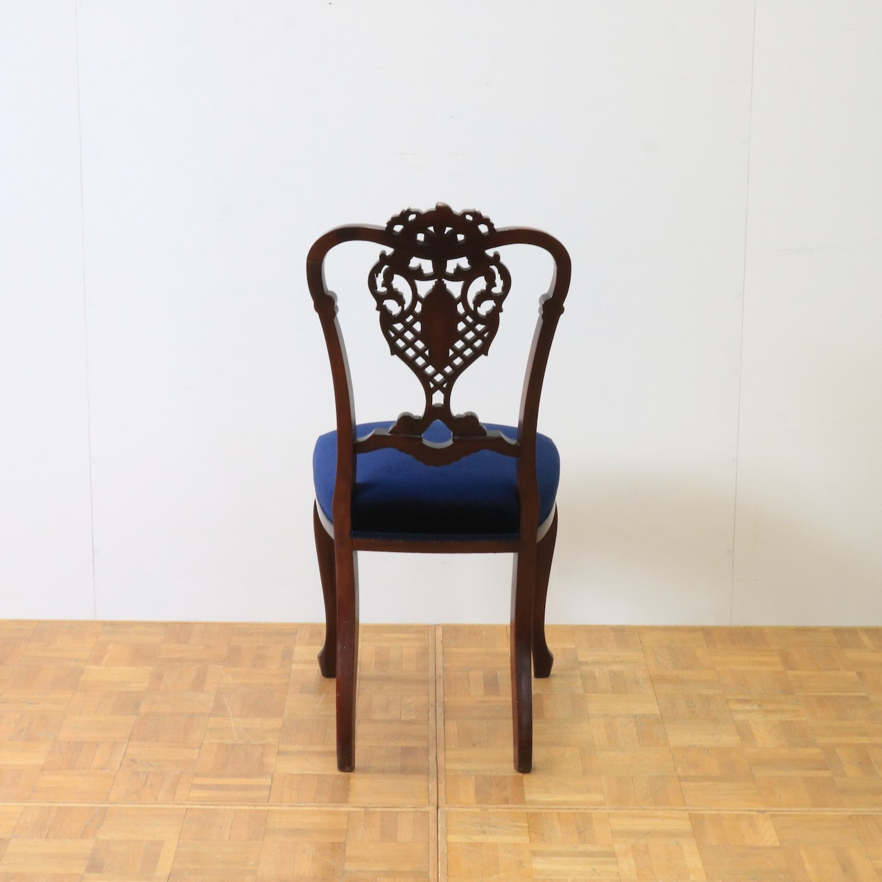 配送料の目安 ▶︎1910年代、マホガニー材のサロンチェアー。精巧な透かし彫りがゴージャスな背もたれが特徴的で、優雅な雰囲気をまとうチェアーです。ティーサロンやくつろぎのリビングルームにいかがでしょうか。