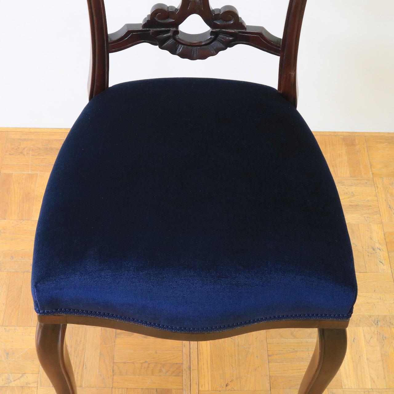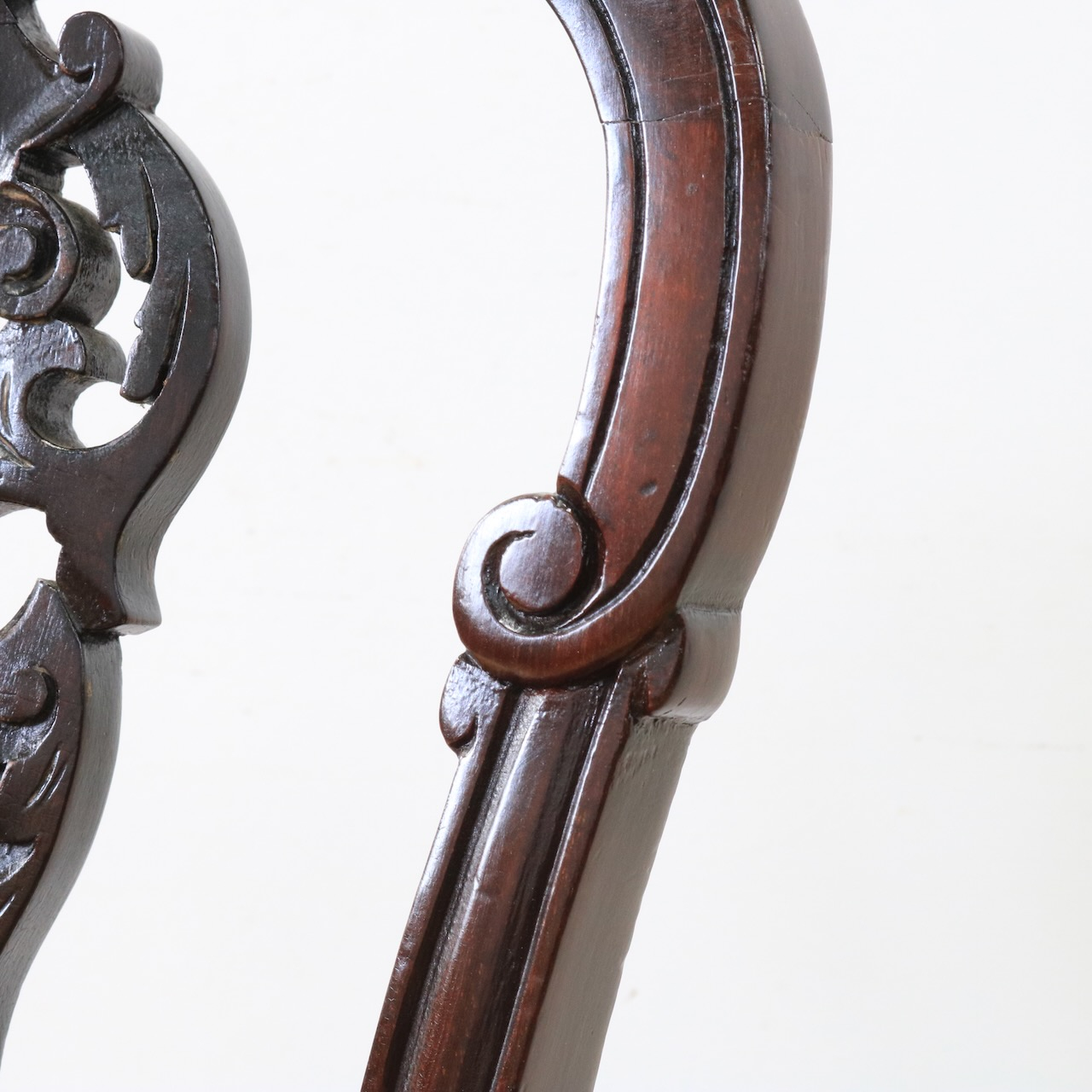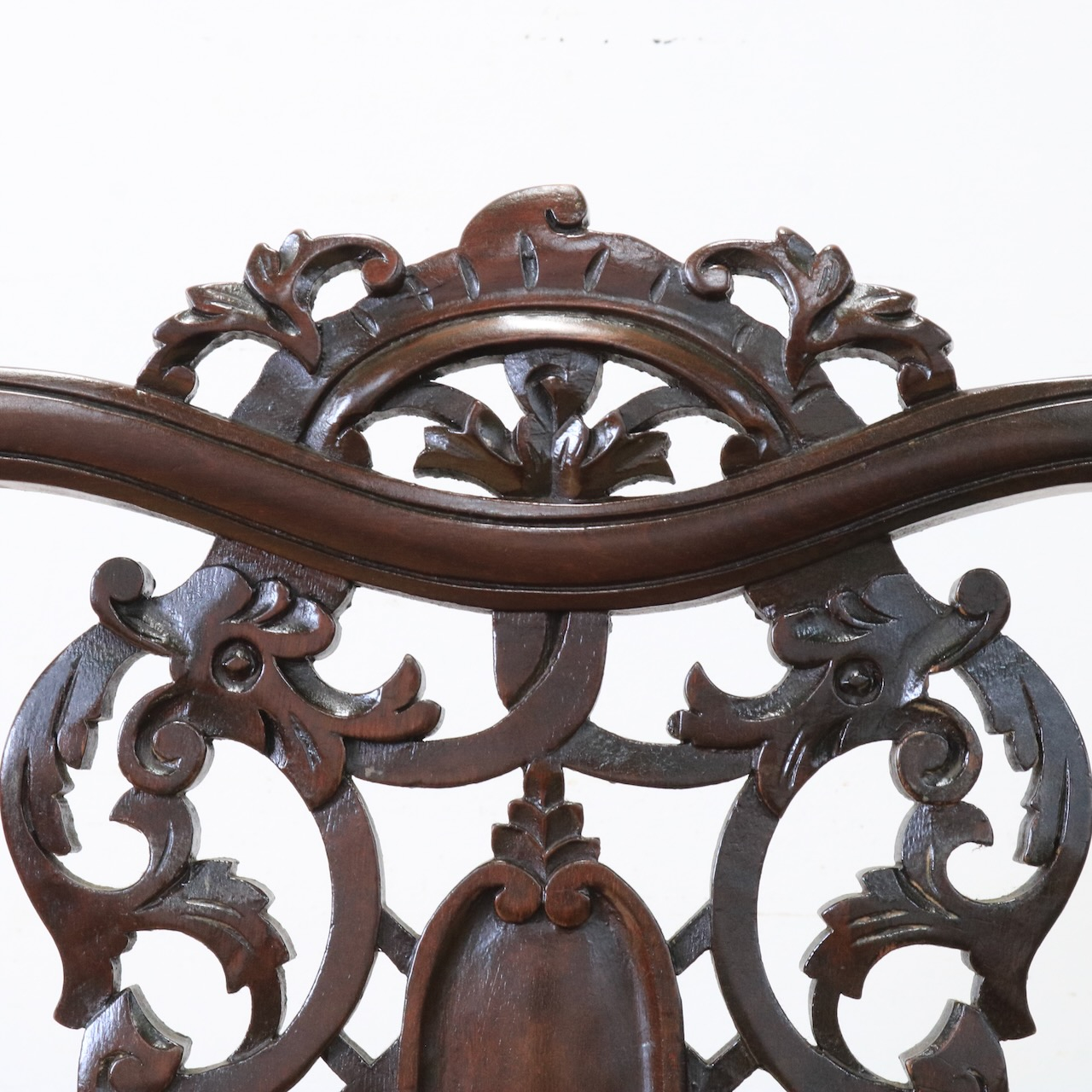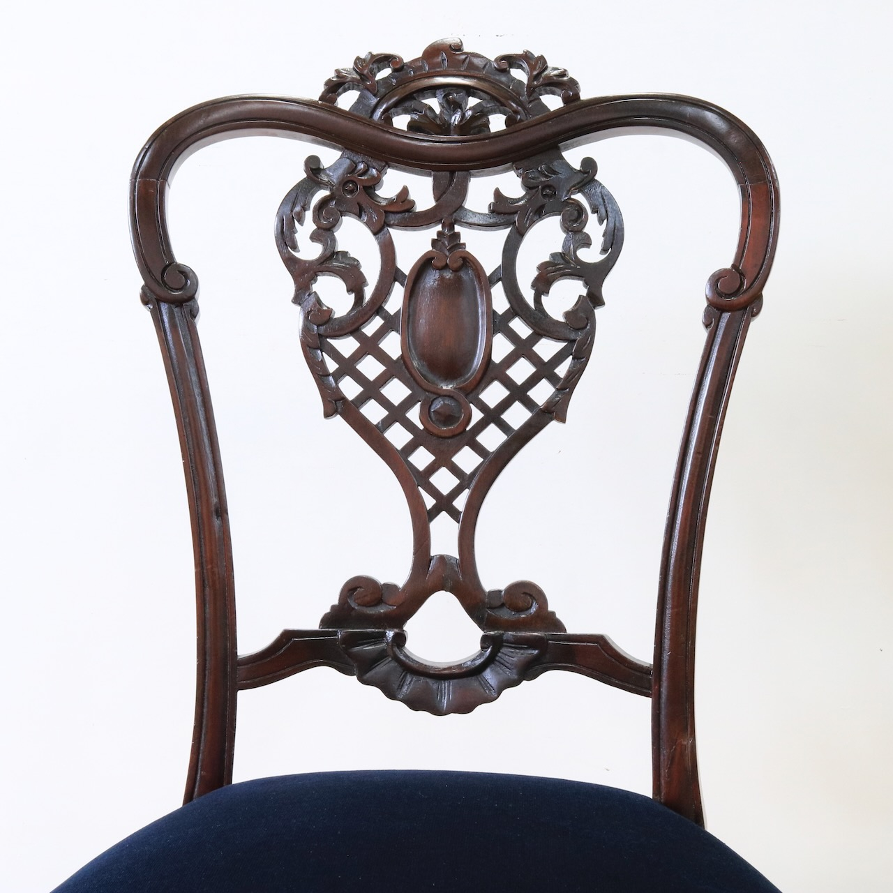 配送料の目安 ▶︎1910年代、マホガニー材のサロンチェアー。精巧な透かし彫りがゴージャスな背もたれが特徴的で、優雅な雰囲気をまとうチェアーです。ティーサロンやくつろぎのリビングルームにいかがでしょうか。