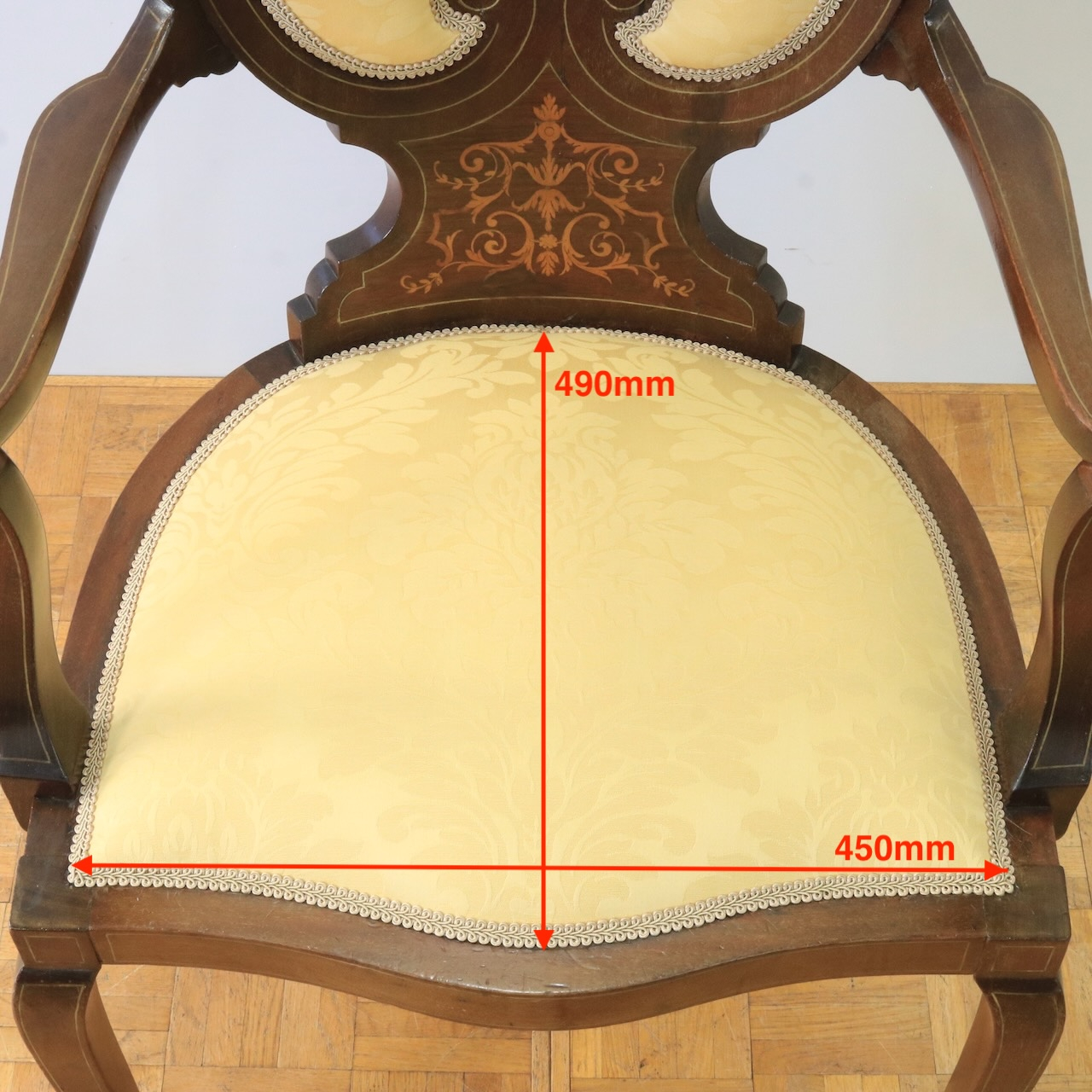 インレイ細工は全体に施され、細部まで美しく仕上げらたアームチェアーです。