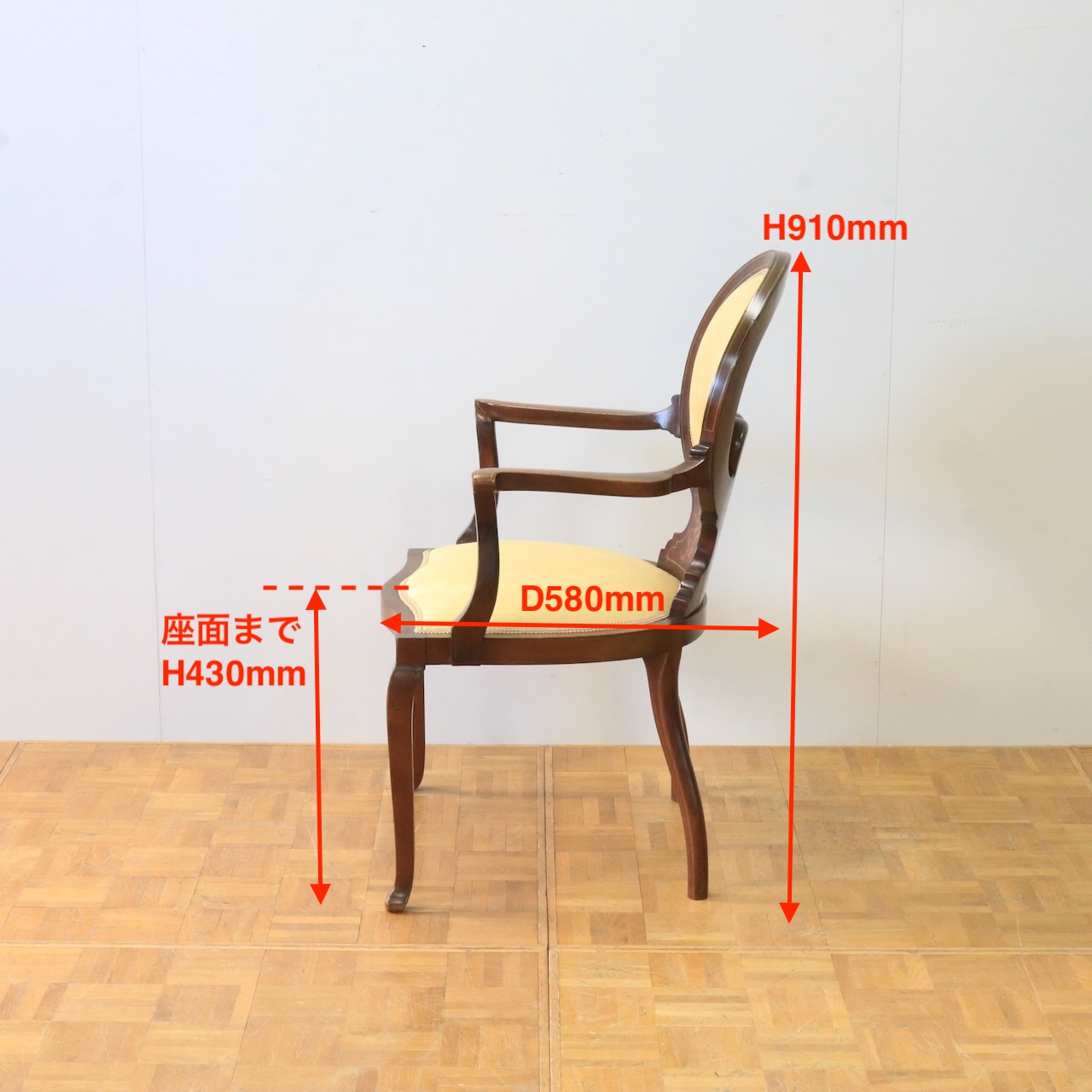 配送料の目安 ▶︎1910年代、マホガニー材のアームチェアー。