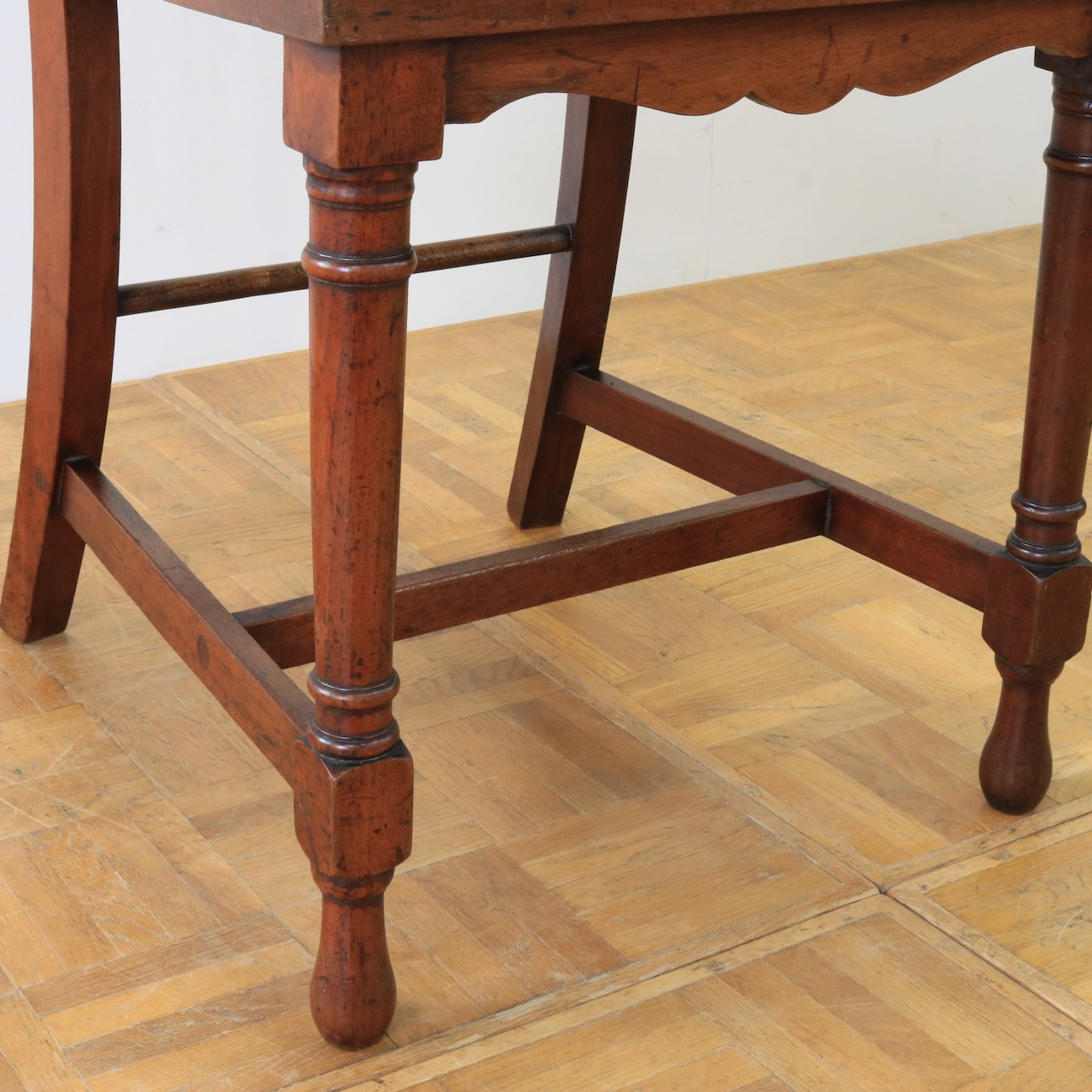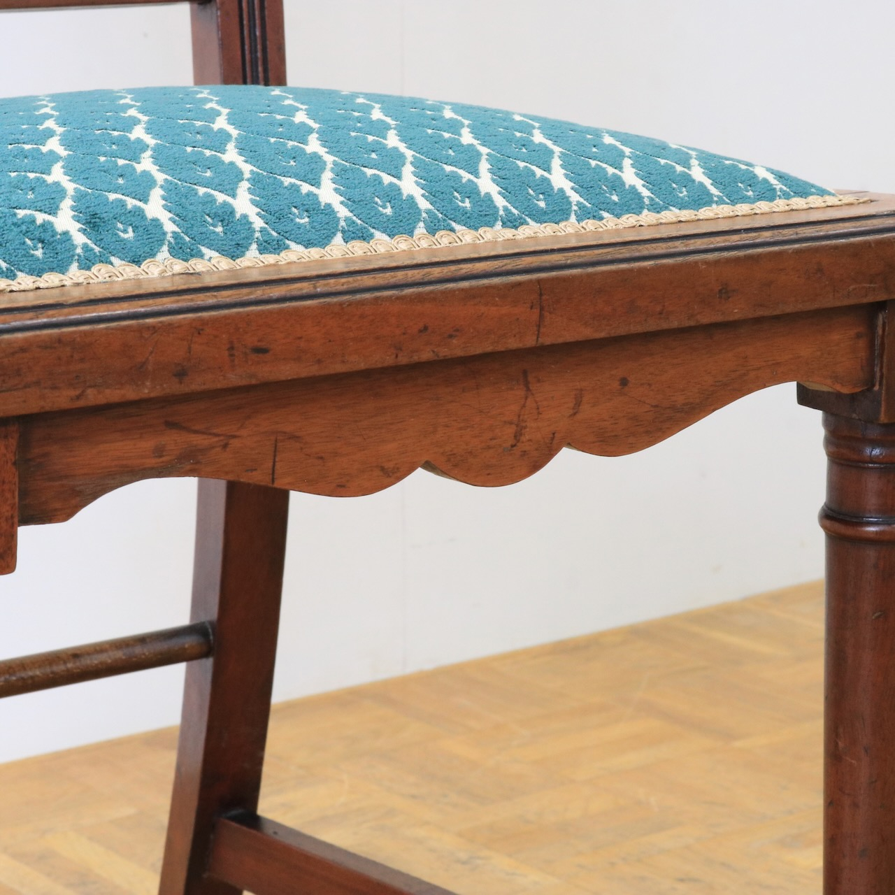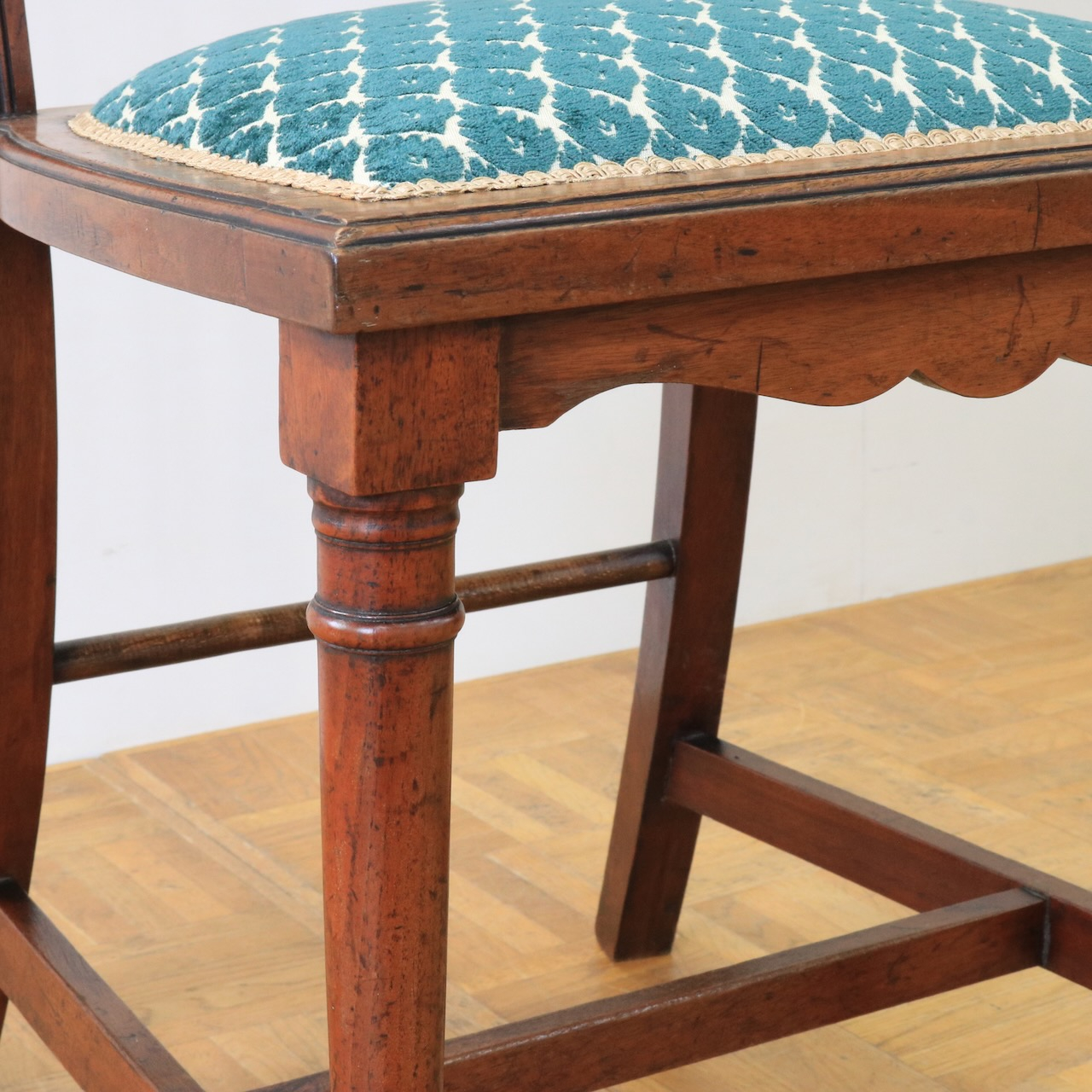 脚元はターニングを用いたデザイン。スラリとしたシルエットと緩やかな弧を描く装飾のコントラストが美しいアンティークチェアーです。