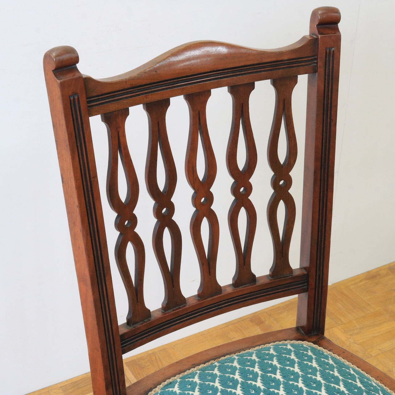 配送料の目安 ▶︎1910年代、ウォールナット材のサイドチェアー。小ぶりですが、しっかりとした作りで安定感のある座り心地のチェアー。背もたれの透かし模様も個性的です。