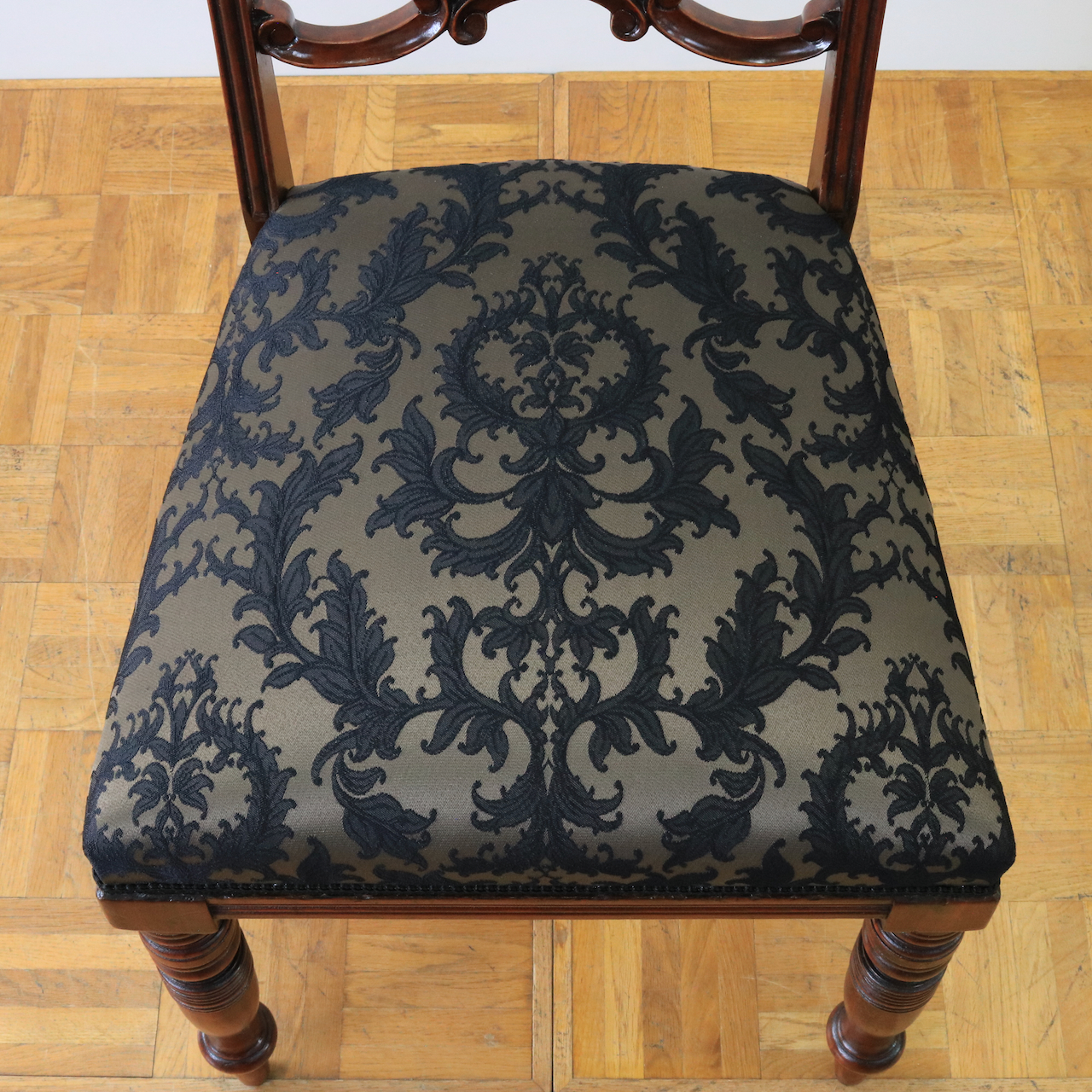 1890年代ヴィクトリアン、ウォールナット材のアンティークサイドチェアー。