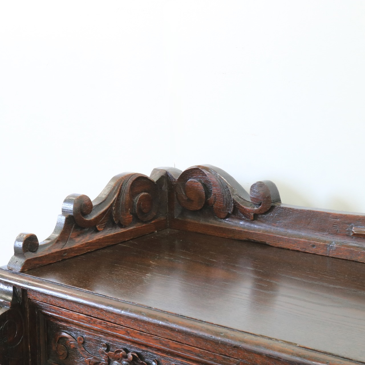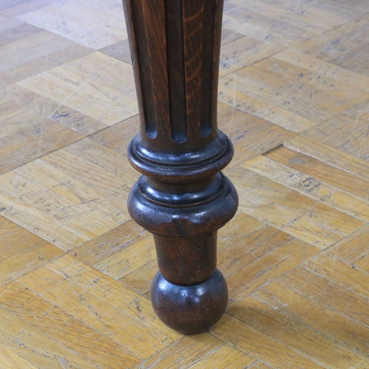 天板下の脚部もどっしりと重みを感じる、これぞオークのアンティーク家具、という荘厳な存在感を放っています。