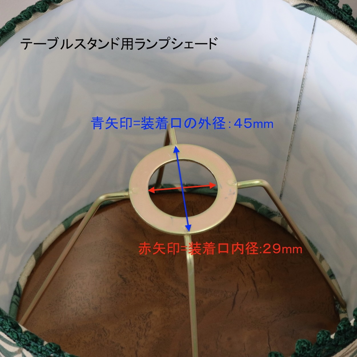 テーブルスタンド用のランプシェードの装着口のサイズは以下の通りです。