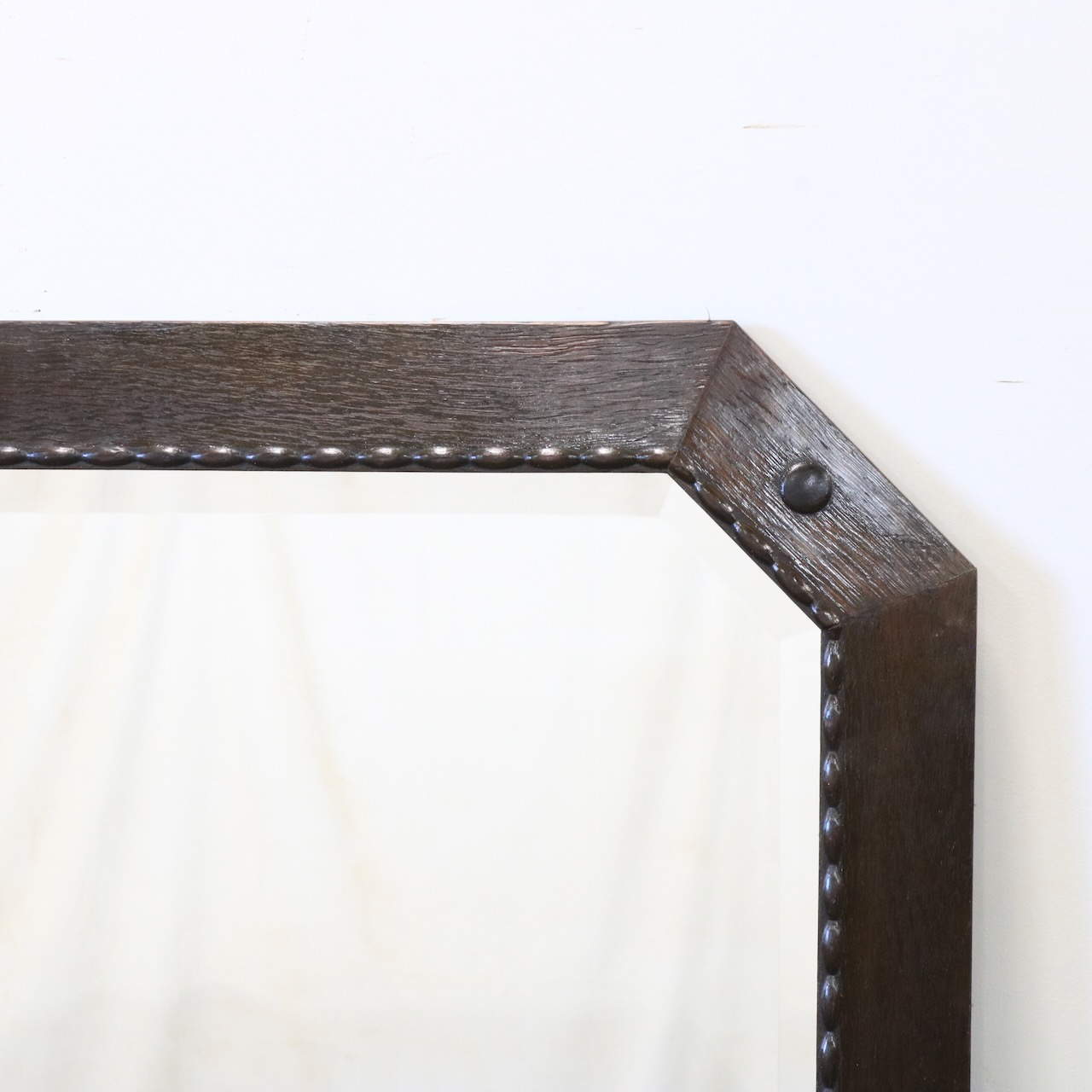 ミラー周りに施されたアクセント装飾が印象的。アンティークらしい落ち着いた雰囲気が魅力です。ミラー部は新しいものに交換済みです。