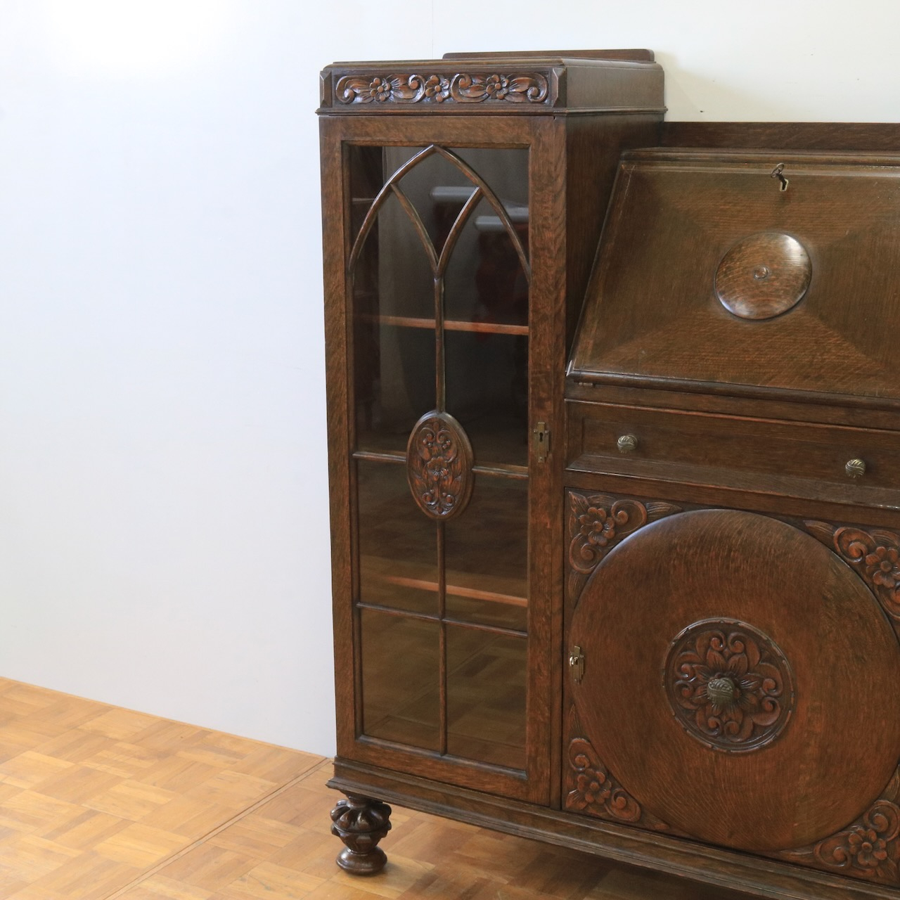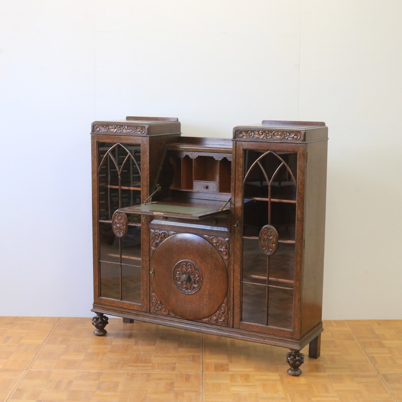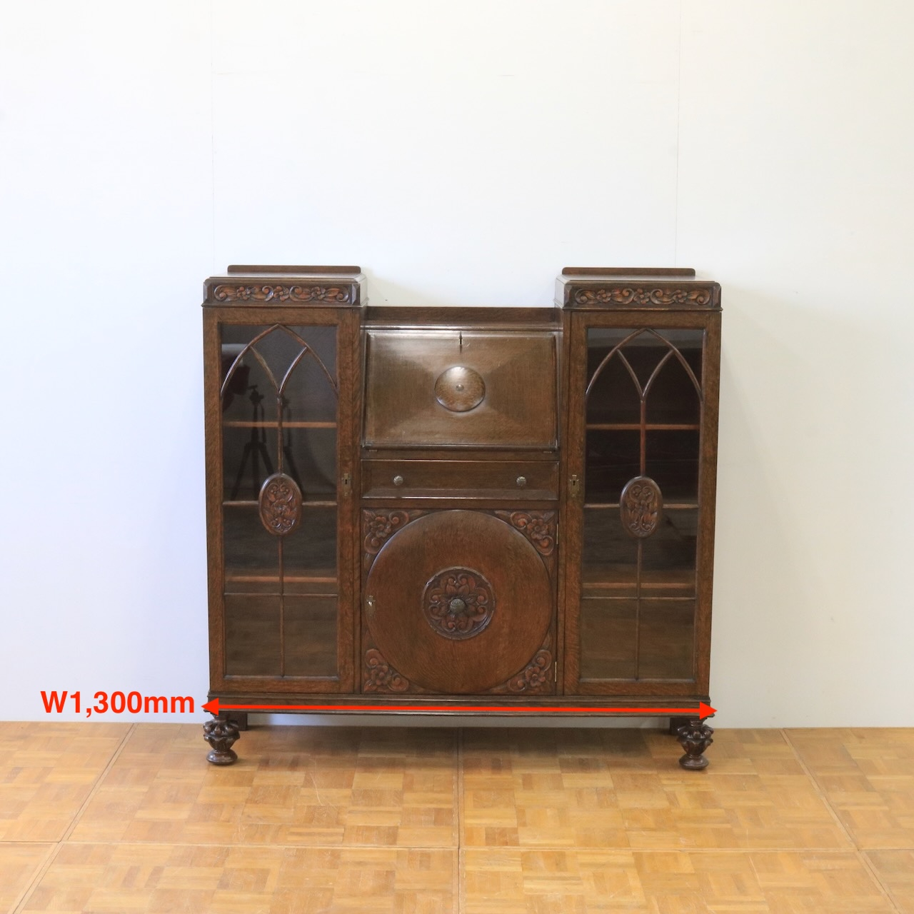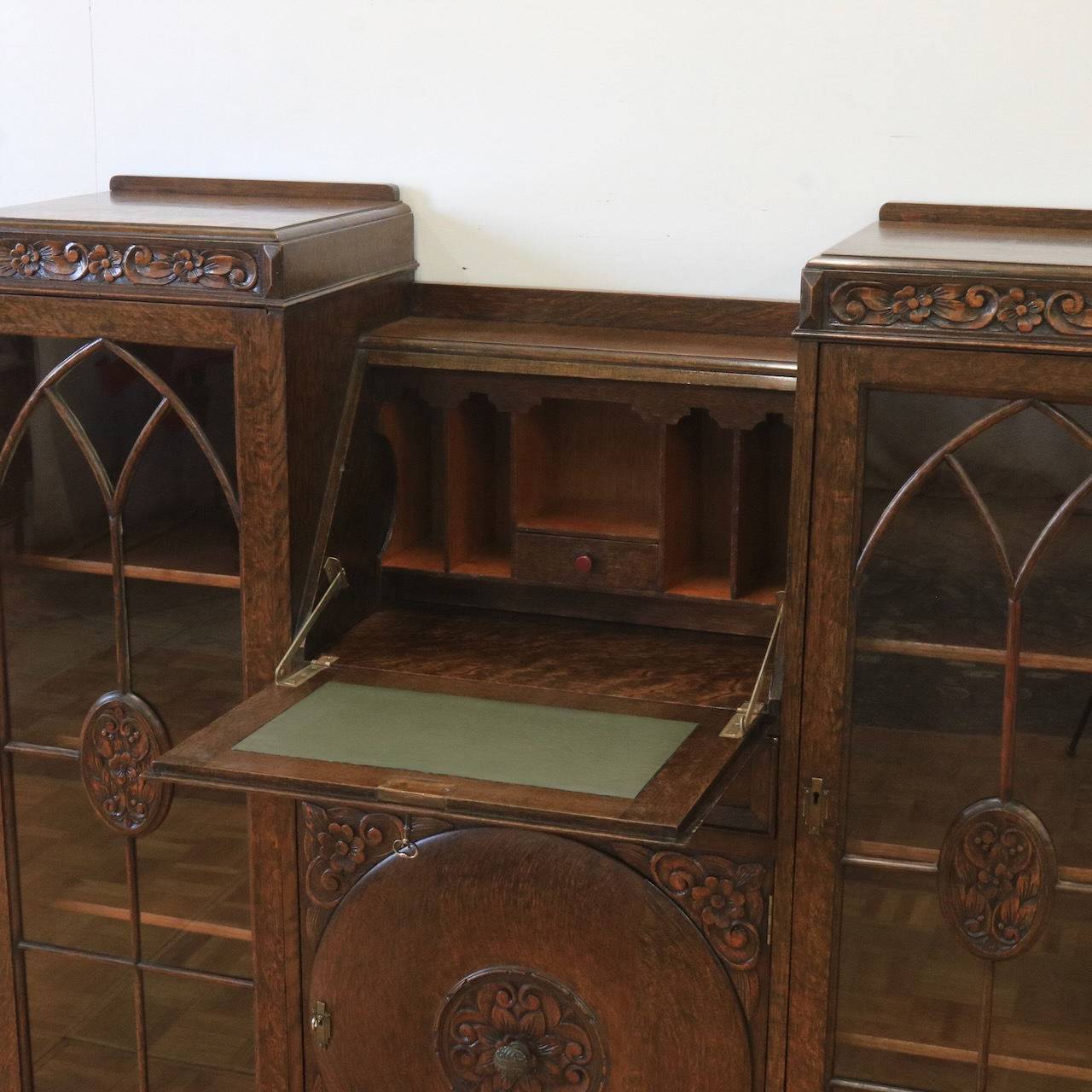 配送料の目安 ▶︎1930年代、オーク材のサイドバイサイド。本棚・ビューロー・本棚が一体化した家具です。