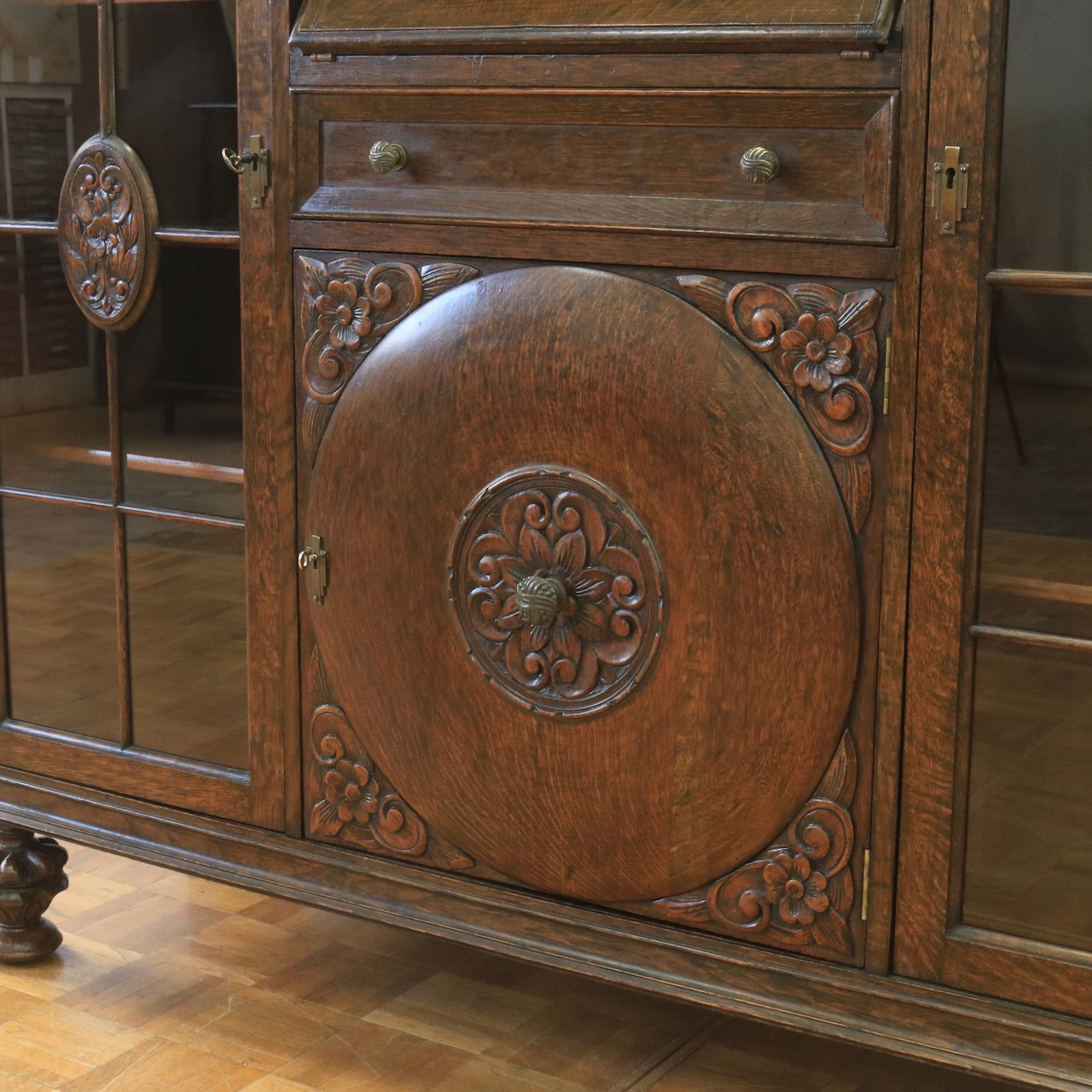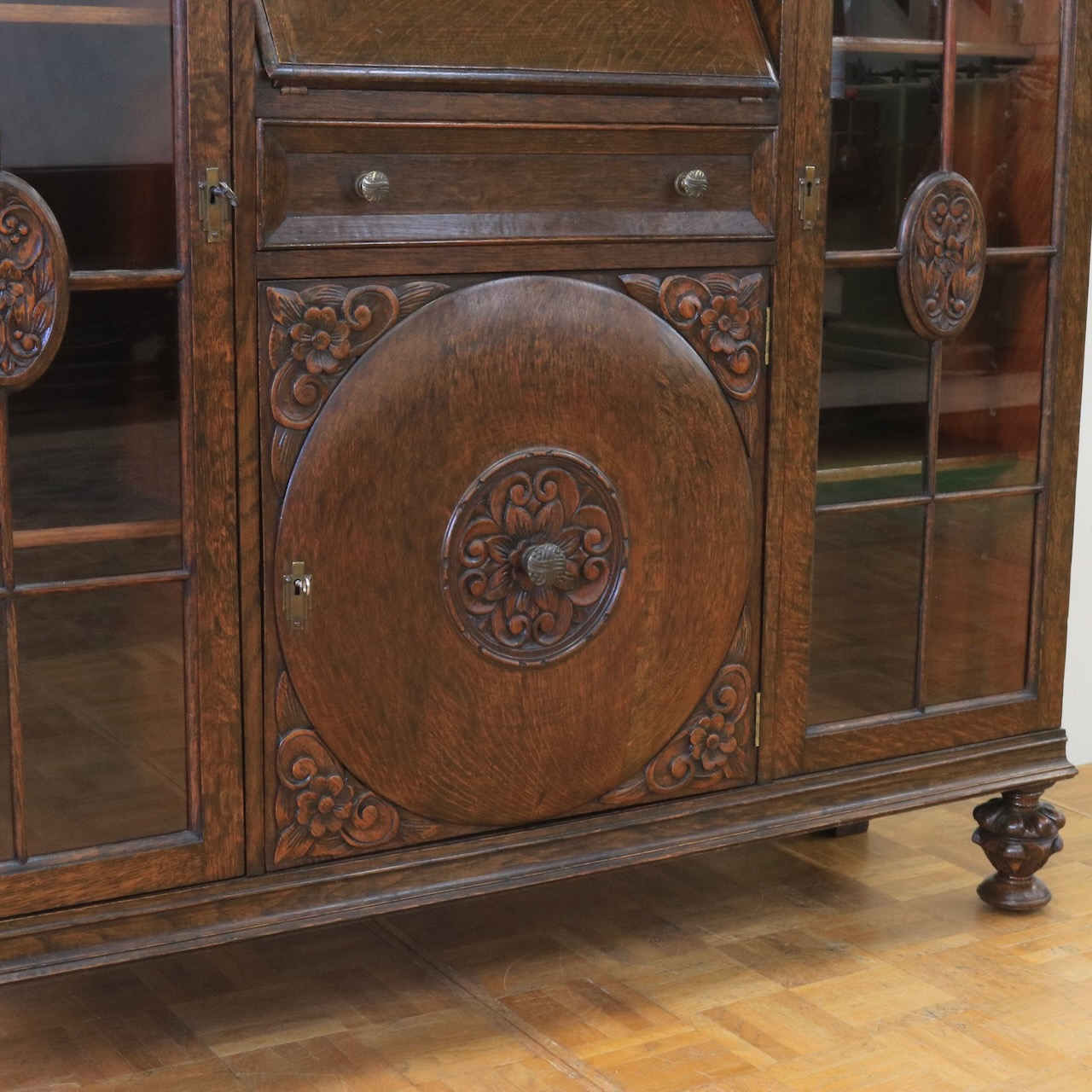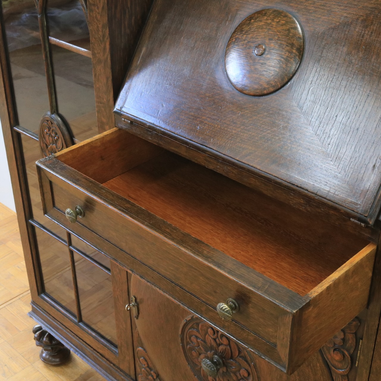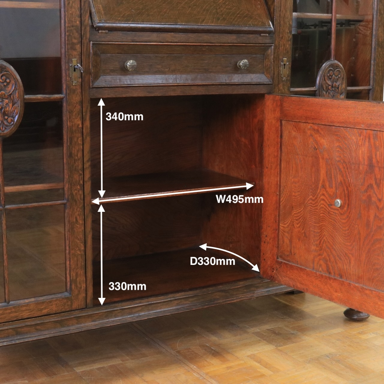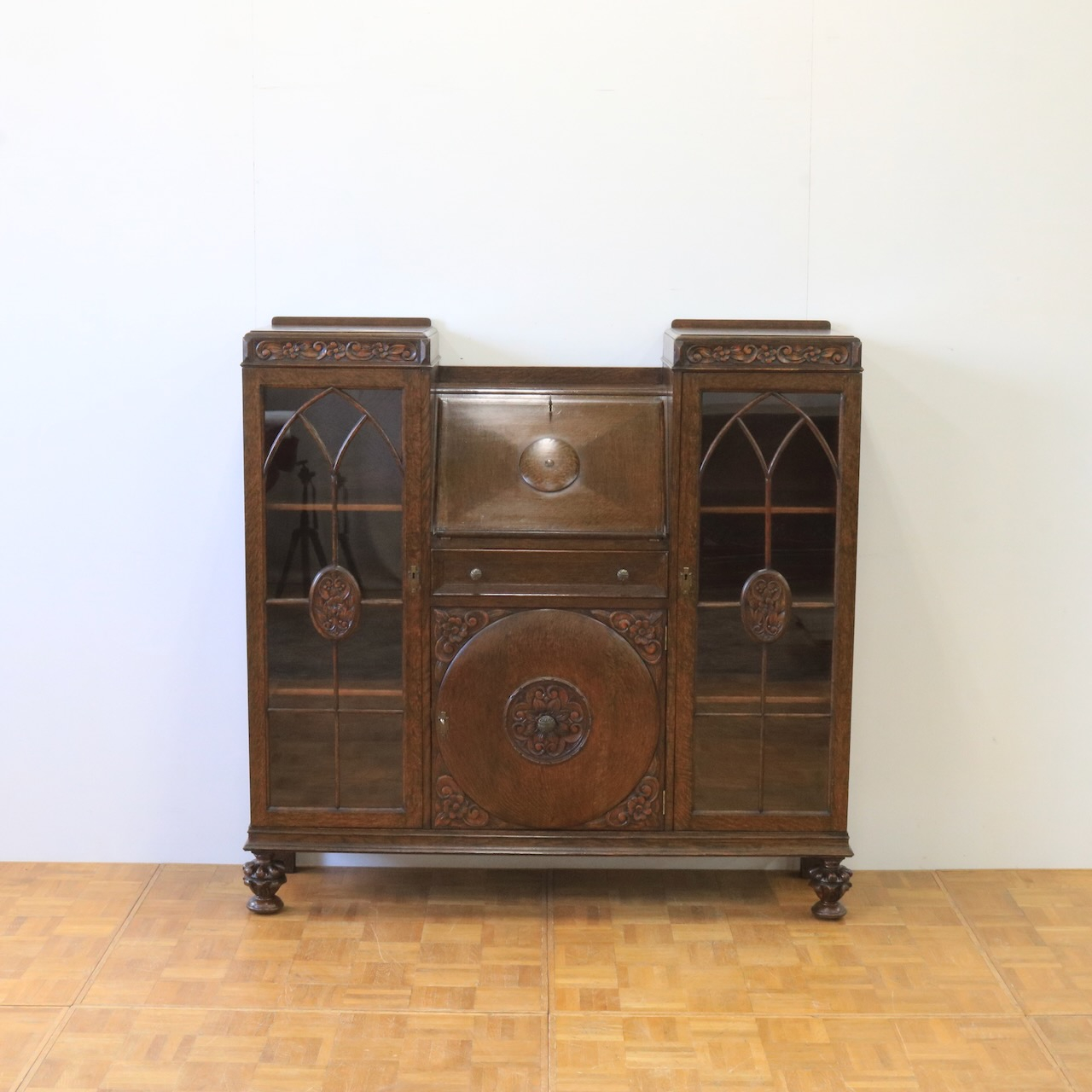 配送料の目安 ▶︎1930年代、オーク材のサイドバイサイド。本棚・ビューロー・本棚が一体化した家具です。