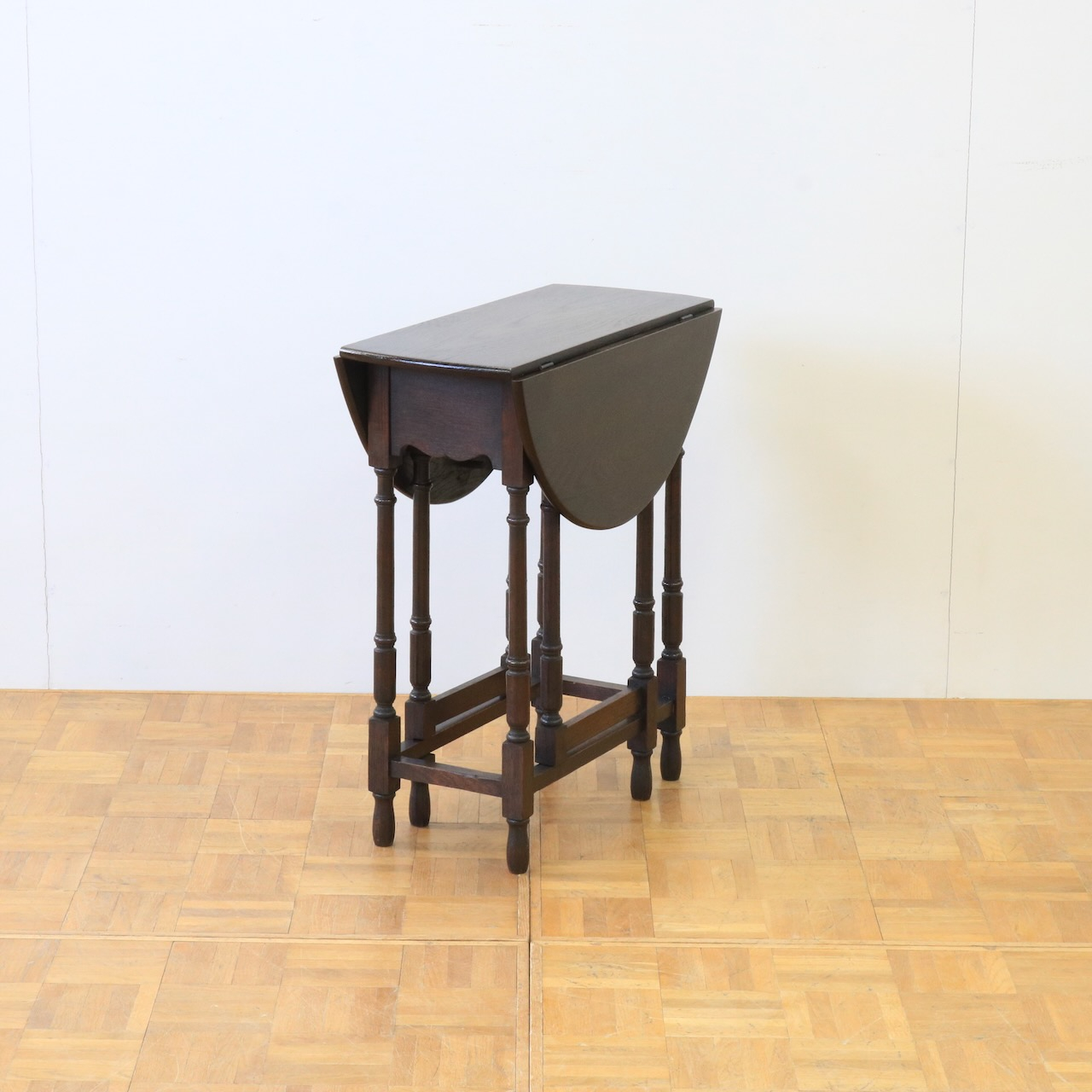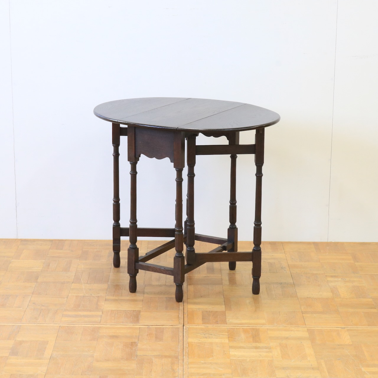 配送料の目安 ▶︎1930年代、オーク材のゲートレッグテーブル。小ぶりなサイズとシンプルなデザインで、小ぢんまりとまとまった印象のテーブルです。ティータイムにソファと一緒に使ったり、お仕事のサブテーブルのように使ったり、様々な場面で活躍する家具です。