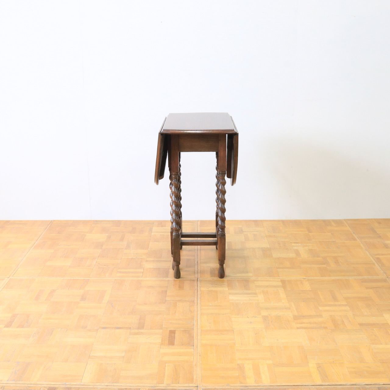 定番のバーリーシュガーツイストレッグ、フラットな天板で、クラシックなデザイン性と使いやすさを兼ね備えたテーブルです。リーフを広げたり畳んだり、お好きなサイズでお使いいただけます。