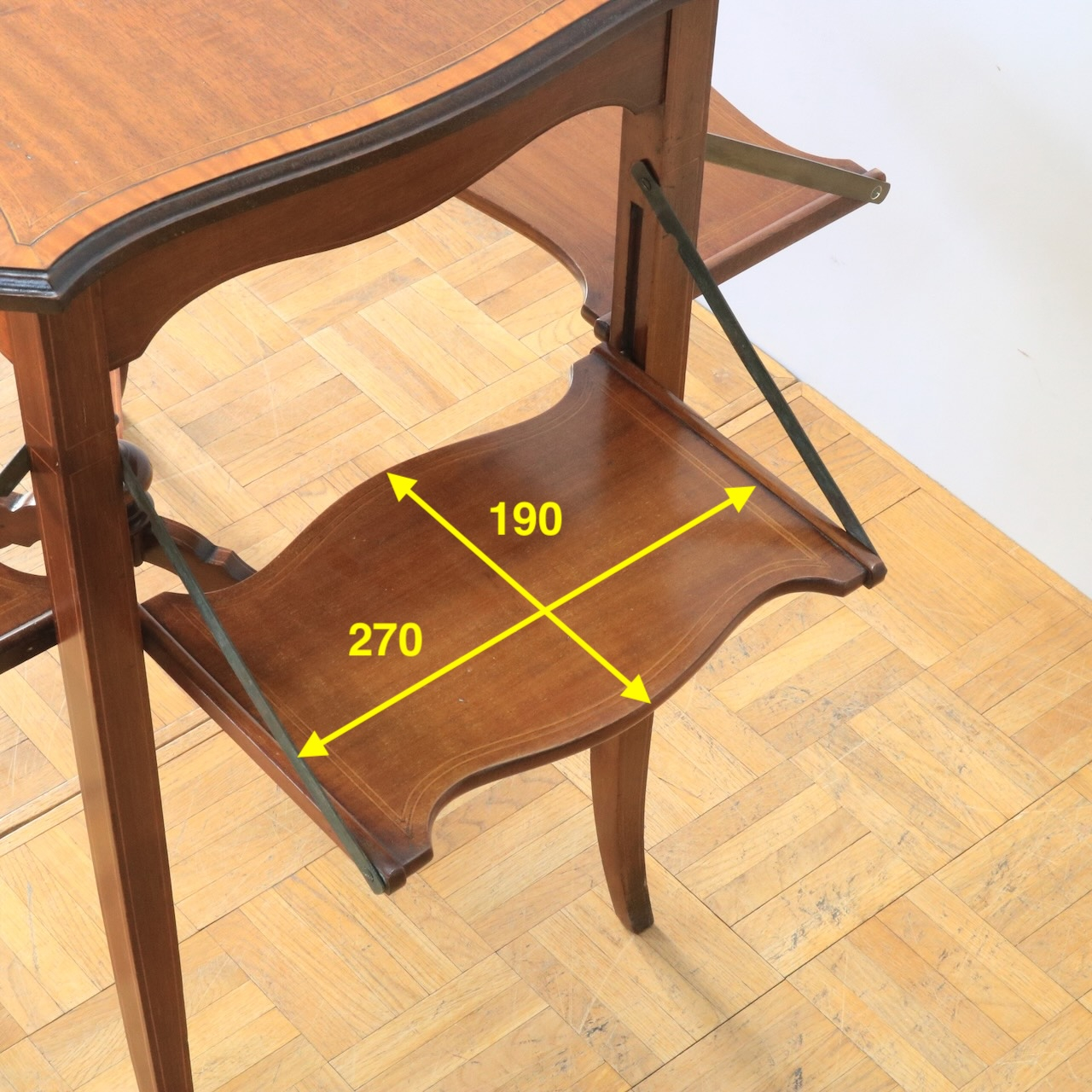 配送料の目安 ▶︎1920年代・イギリス製・マホガニーのサイドテーブル。4方向に付いた小天板を開く事が出来る機能性のあるテーブルです。カードテーブルやカクテルテーブルとしても使う事が出来ます。