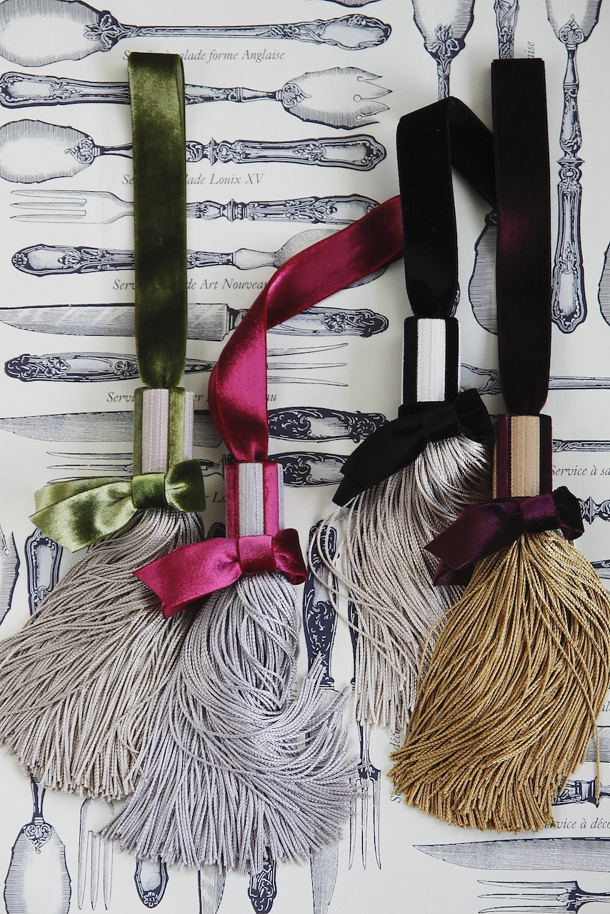 バッグやドアハンドル、日傘などにつけてお楽しみ頂けるベルベットリボンのタッセルワークショップです。