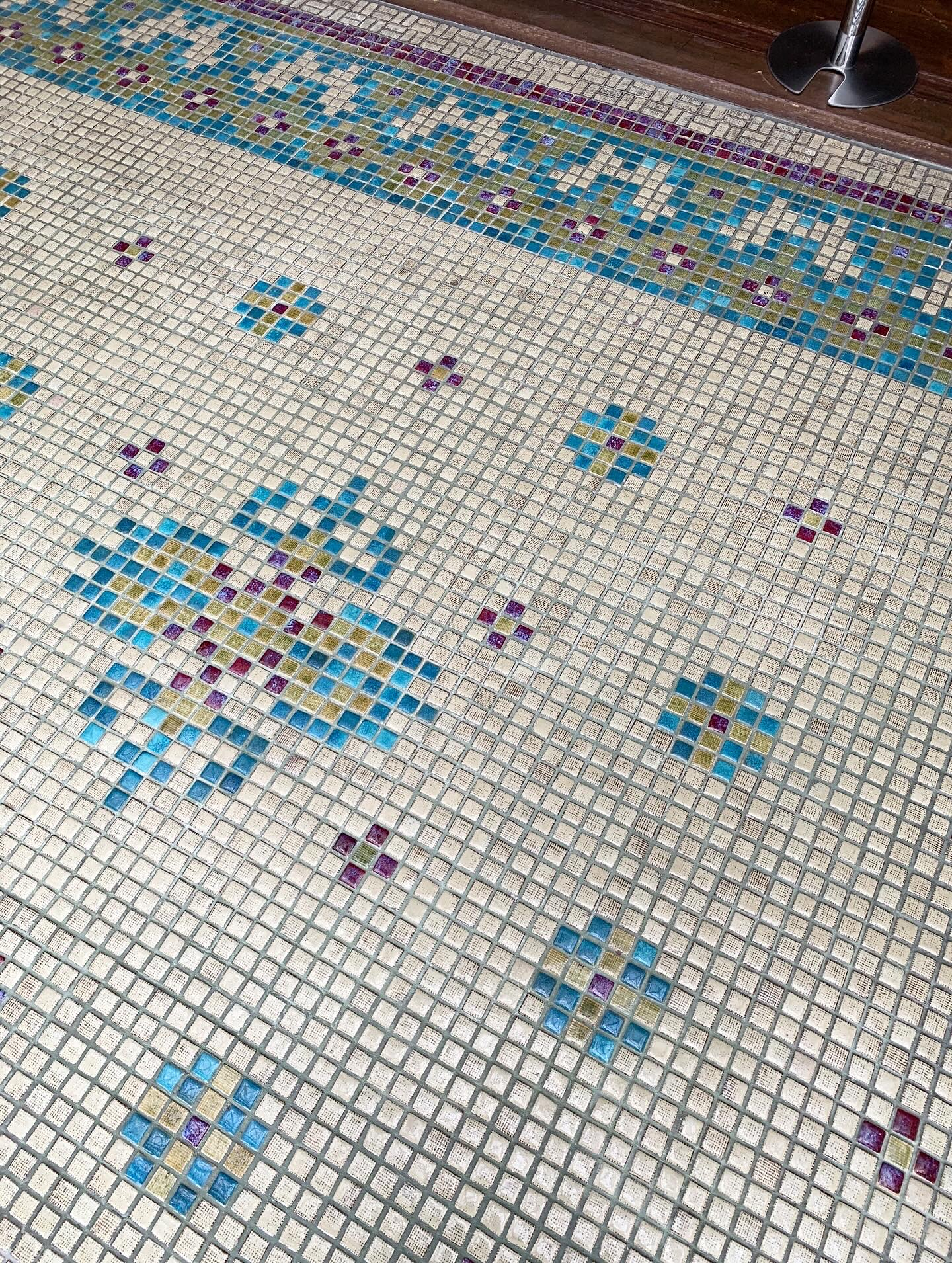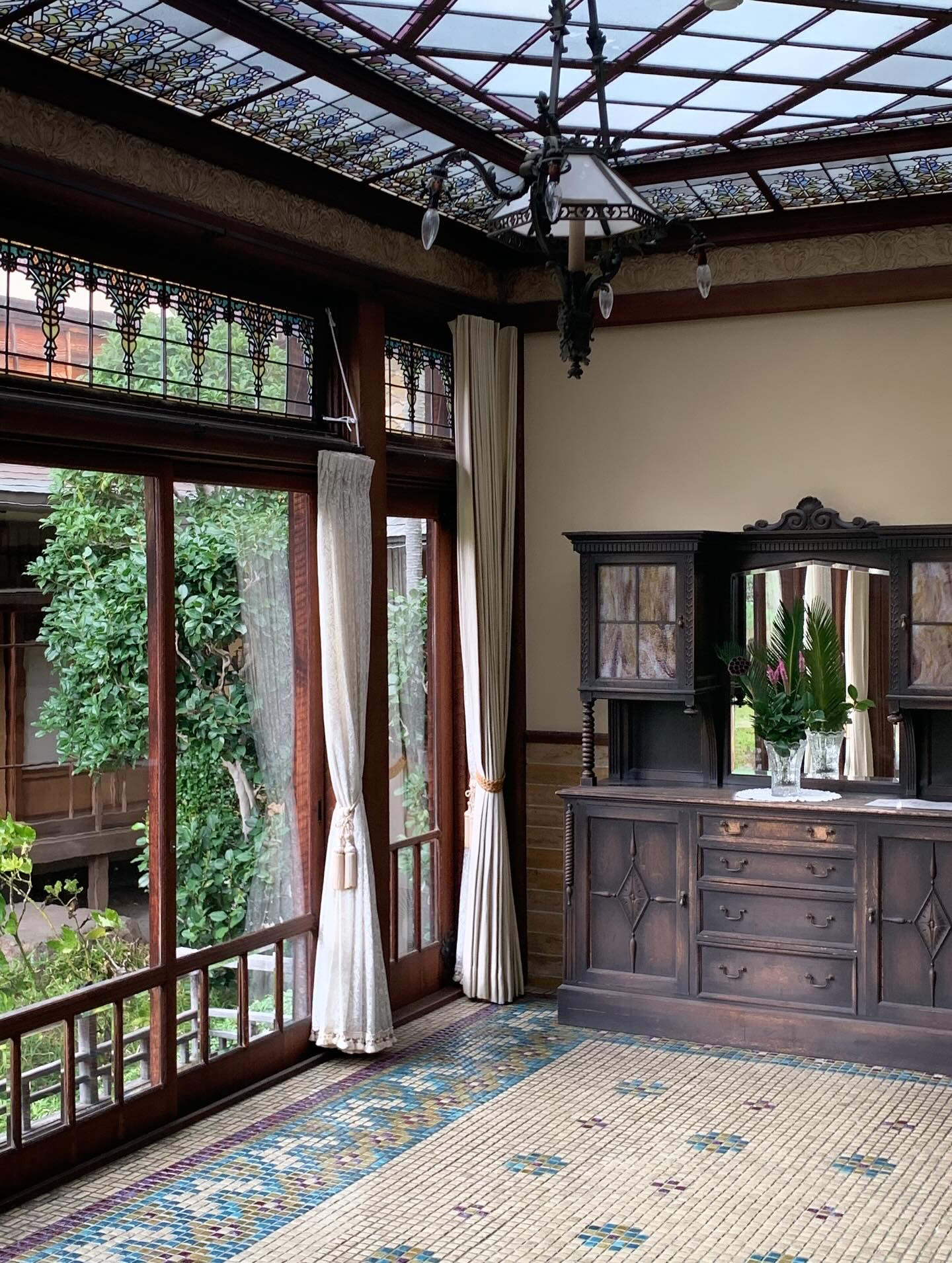 サンルームで使用されているタイルはジェオグラフィカともゆかりの深い、「東京都庭園美術館」や「旧岩崎邸庭園」で使用されているものと同じメーカーだそう。