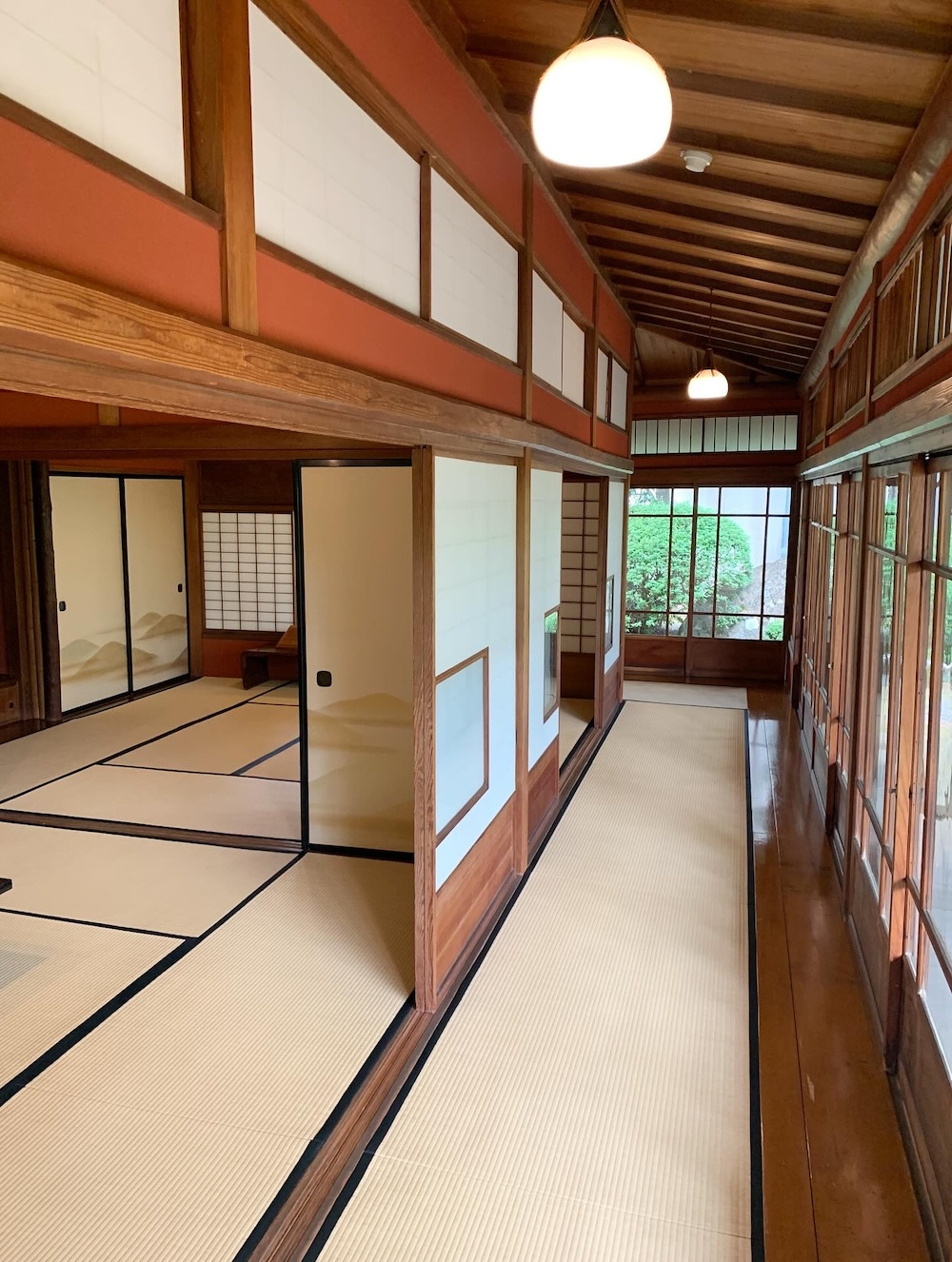 入ってすぐの「麒麟・大鳳の棟」と離れの「孔雀の棟」を含む和風建築は、初代の持ち主である内田信也が自身のお母様の静養のために建てられたそうで、部屋には余分な段差が無く、足に優しいバリヤフリー設計となっています。