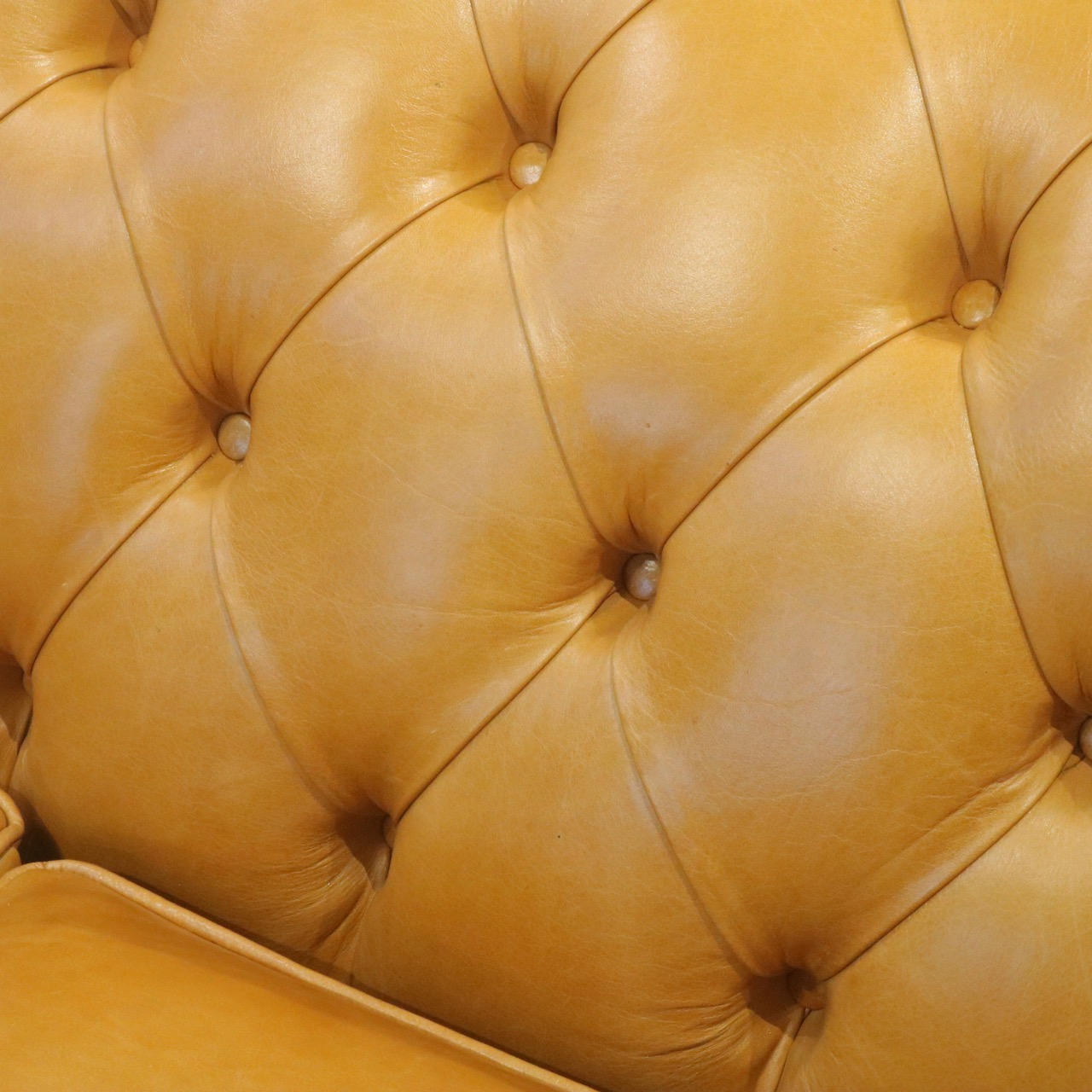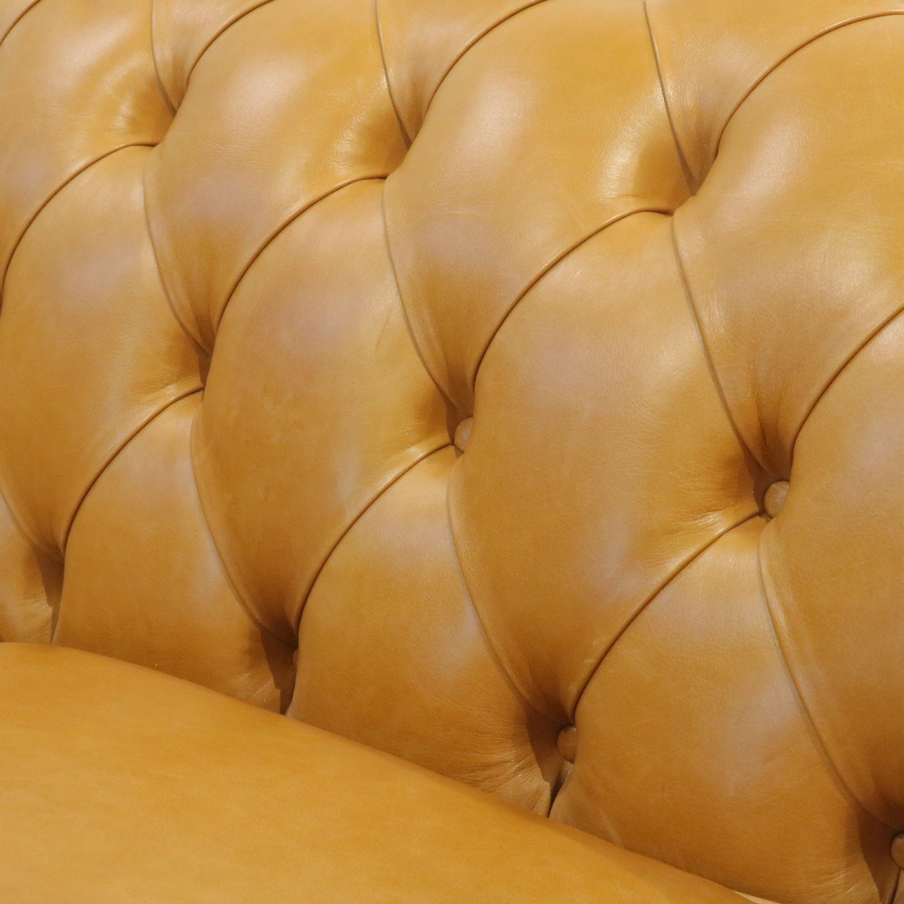 チェスターフィールドソファーの特徴である、背とアームのボタン留め。美しい仕上がりです。