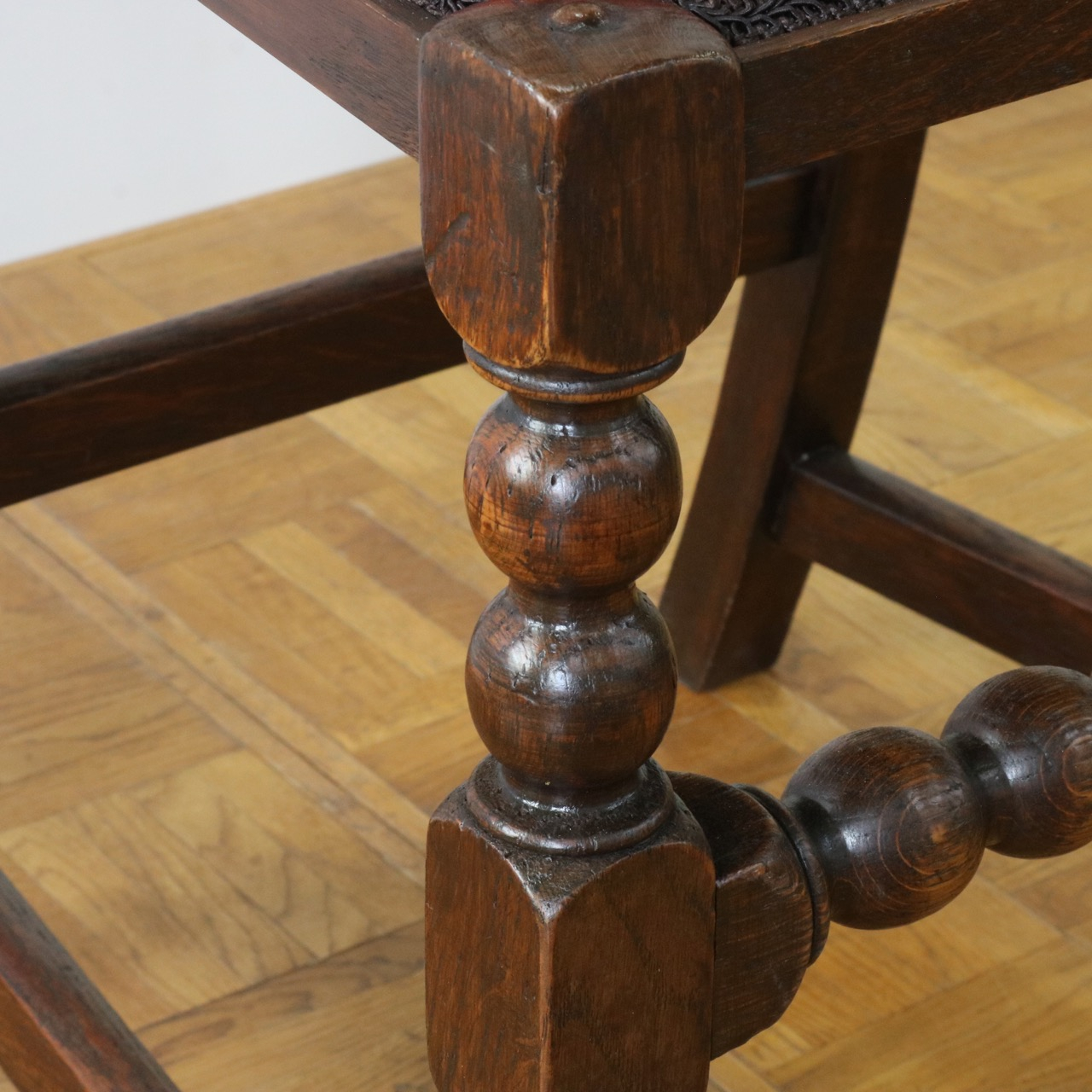 脚元。前面は丸いお団子のようなボビンターニングと呼ばれる挽物加工が施されています。