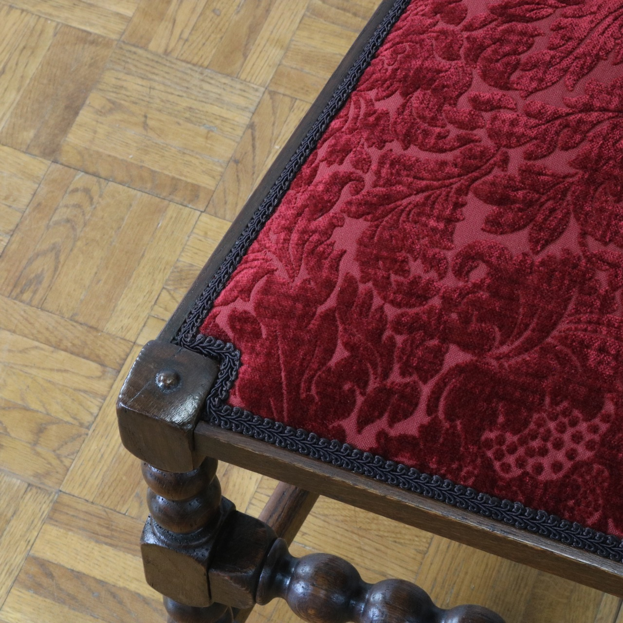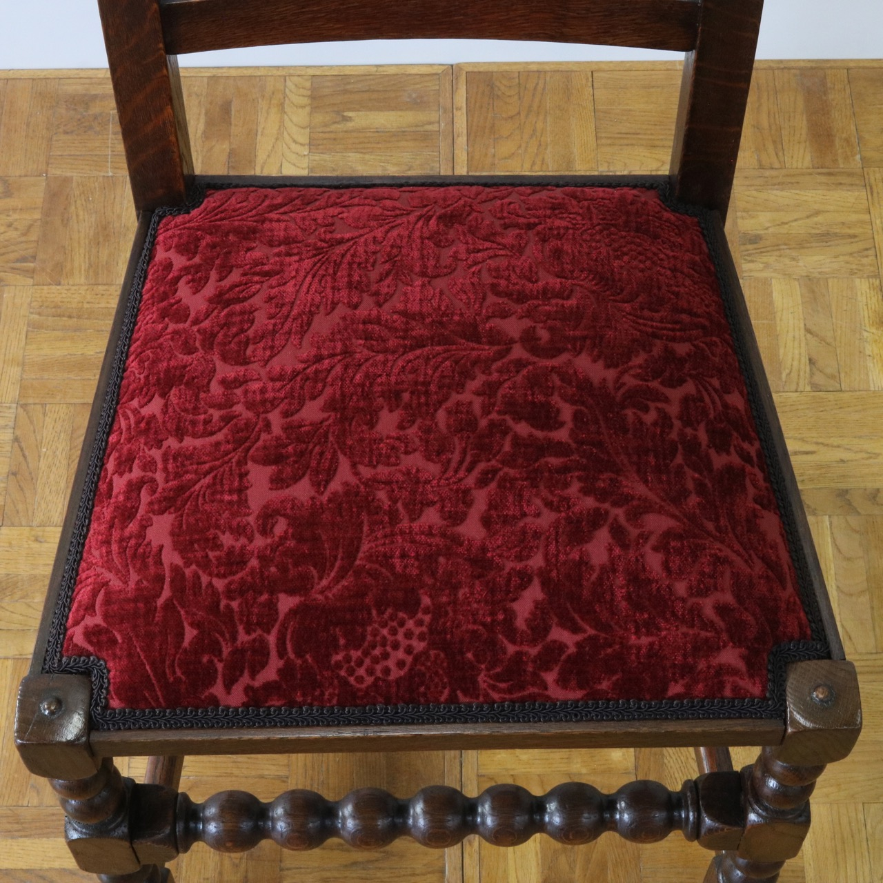 座面は少し起毛した草花模様の生地を張りました。