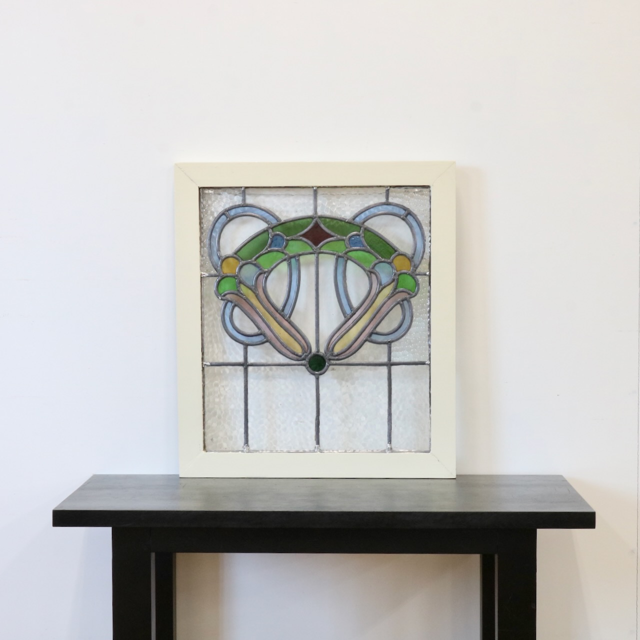 色とりどりな配色でステンドグラスの醍醐味を存分に楽しめる一枚。