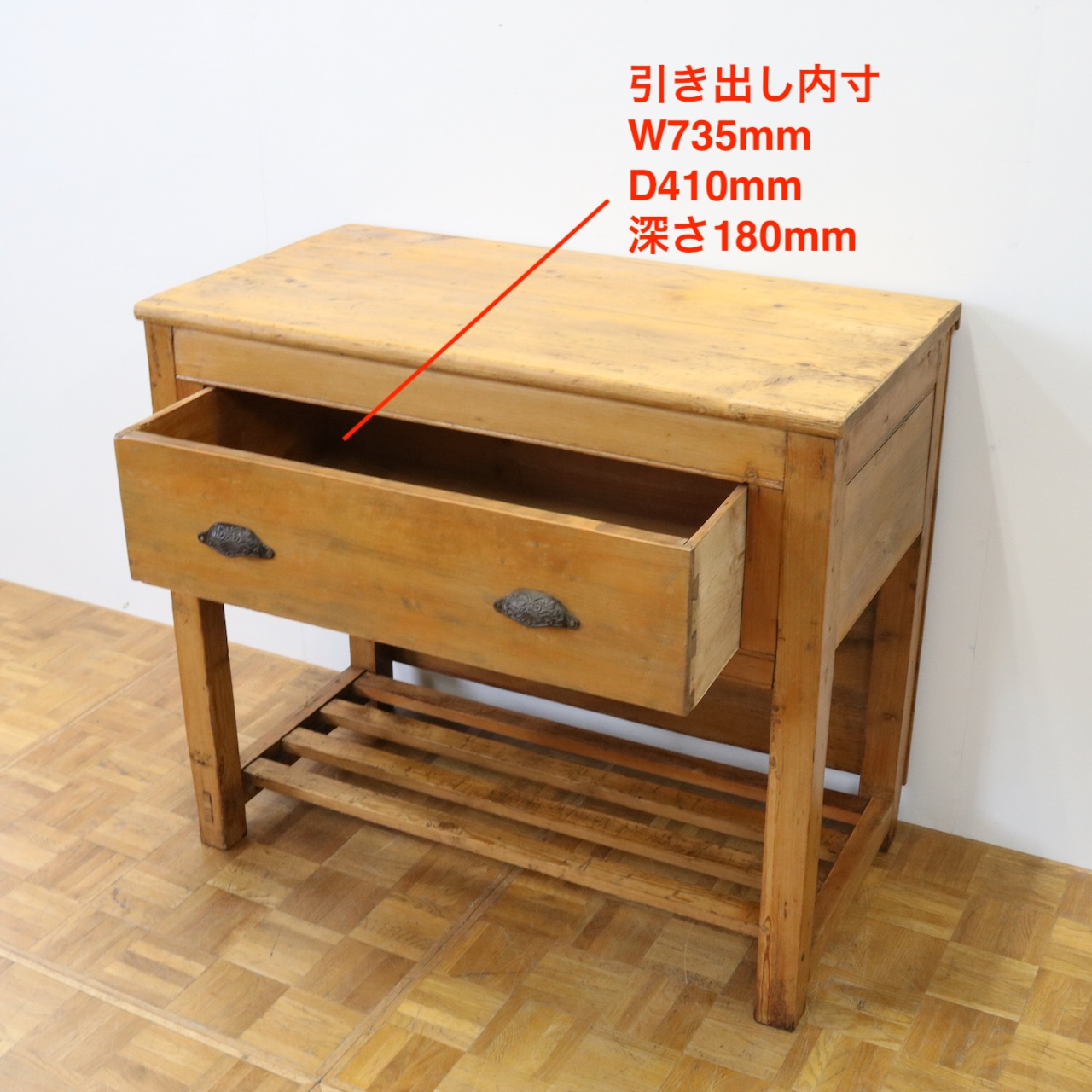 引き出しはスムースに出し入れできるよう修復してあります。